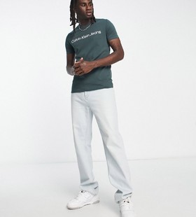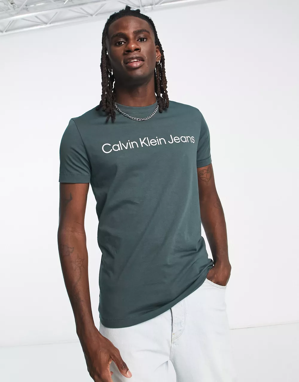 - Calvin Klein Jeans institutional logo slim fit t-shirt in dark green