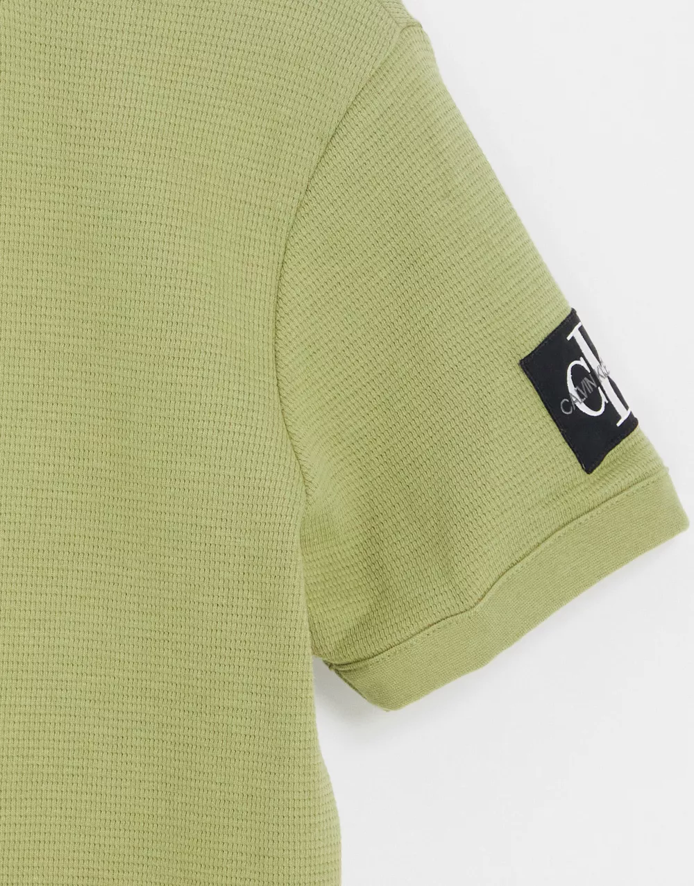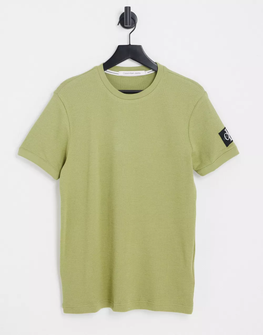 - Calvin Klein Jeans monogram badge waffle t-shirt in khaki