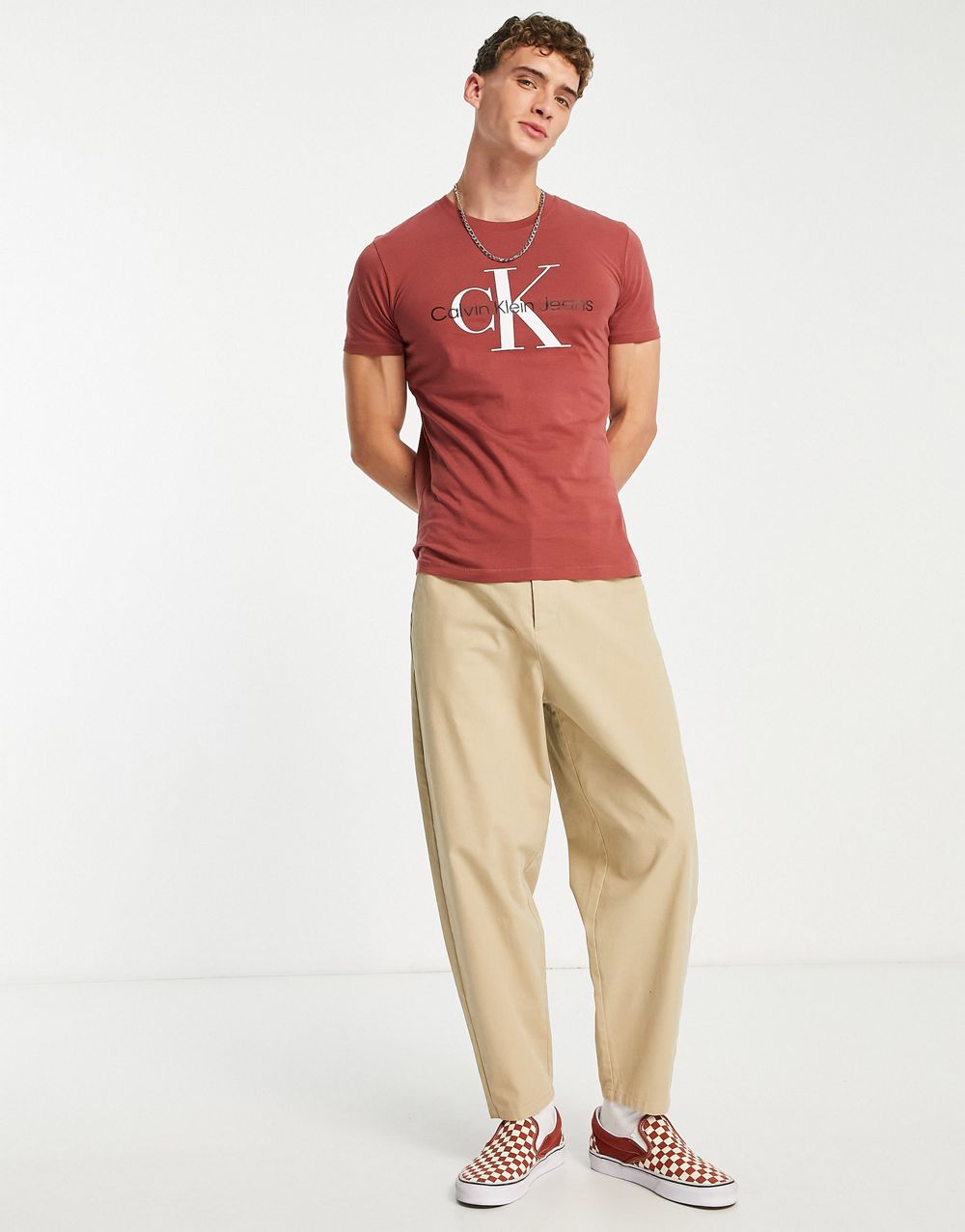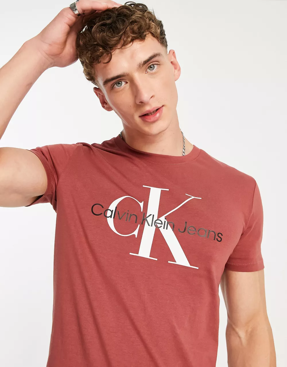 - Calvin Klein Jeans seasonal monogram t-shirt in burnt orange