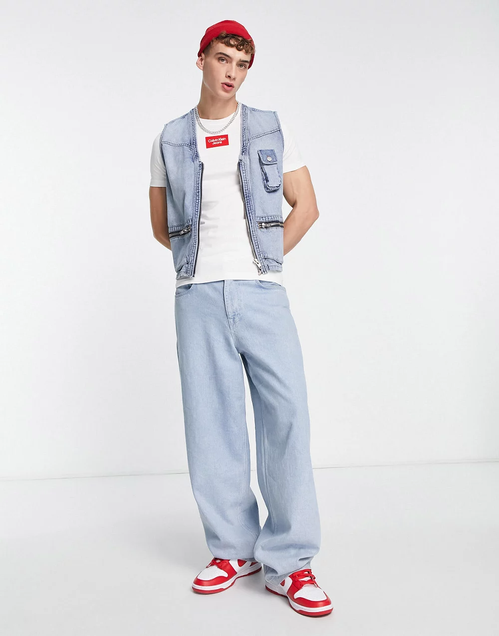 - Calvin Klein Jeans small center box logo slim fit t-shirt in white