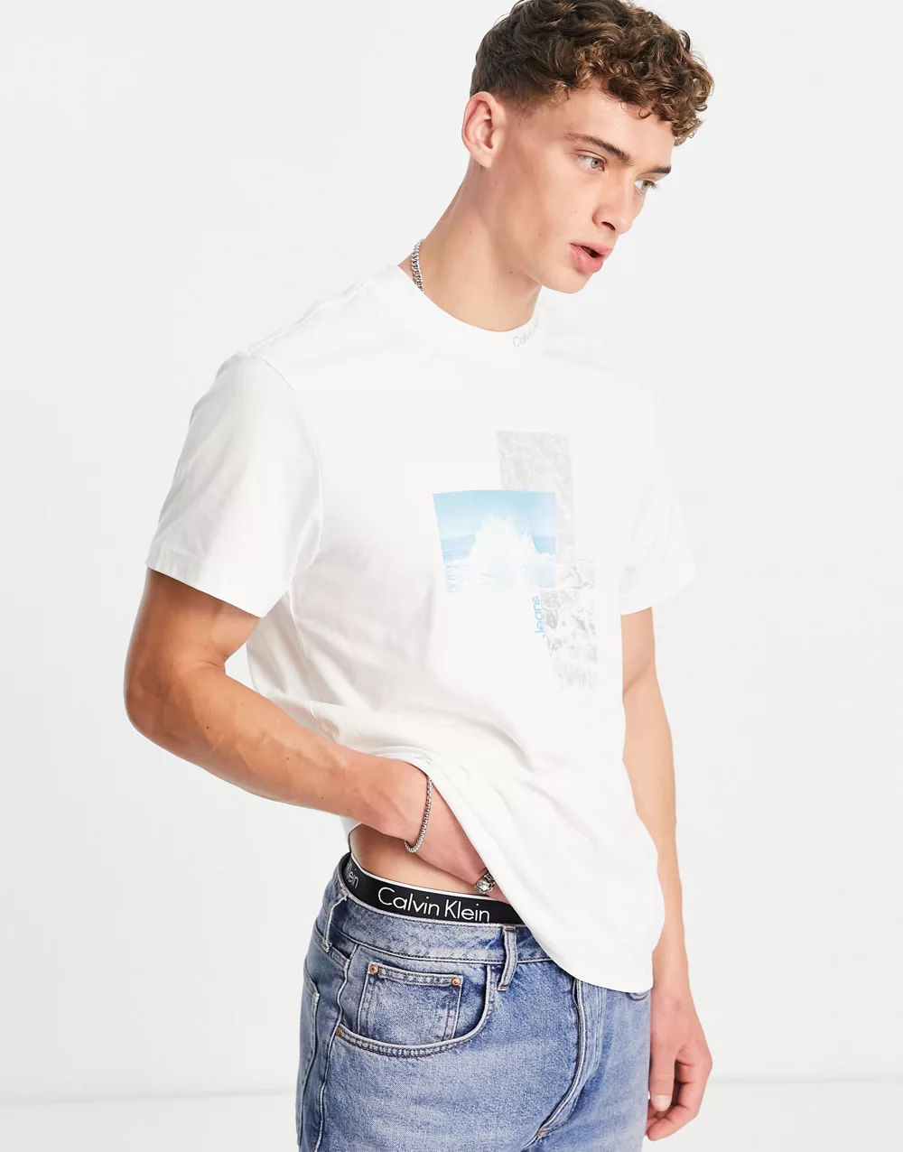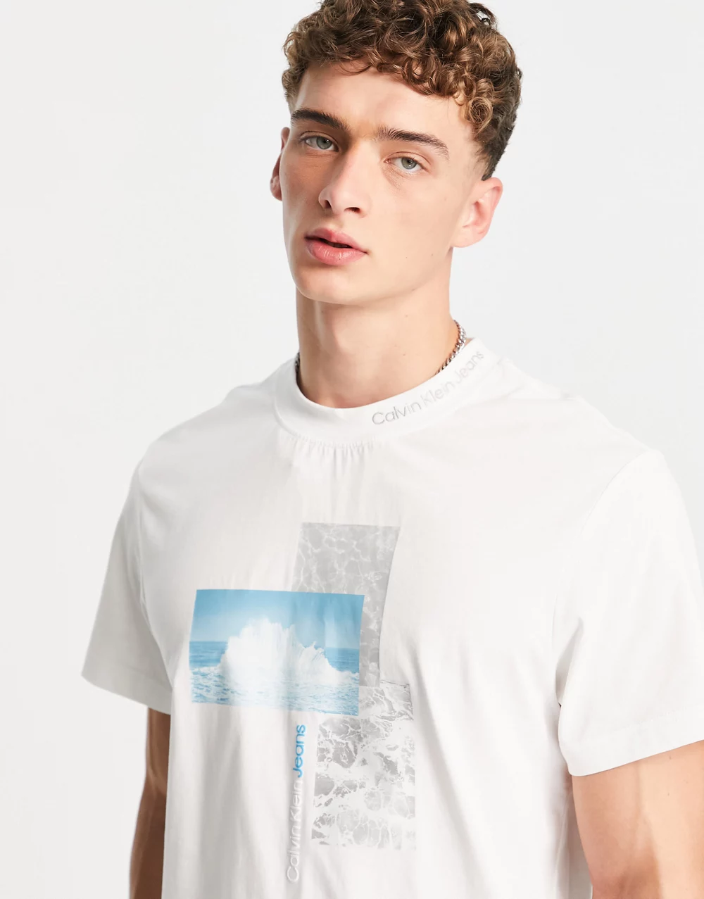- Calvin Klein Jeans splash photoprint t-shirt in white