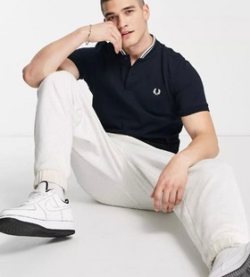 - Fred Perry bomber collar pique polo shirt in navy