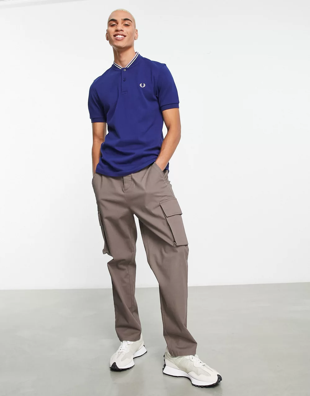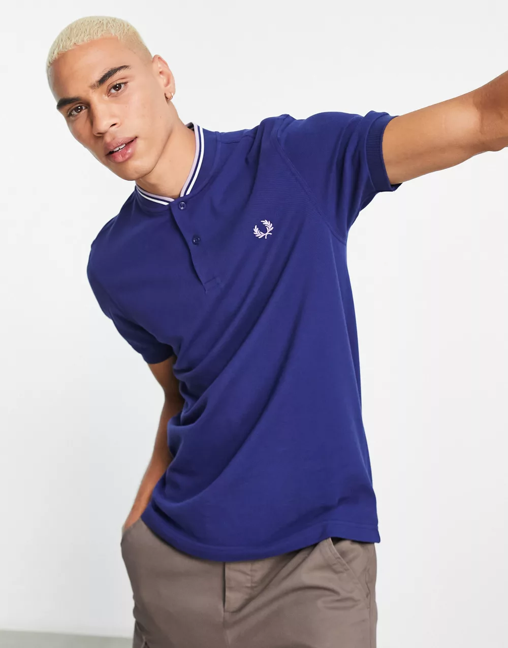 - Fred Perry bomber collar polo shirt in navy