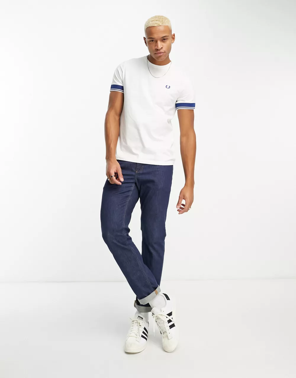 - Fred Perry contrast cuff t-shirt in white 2373728264-50