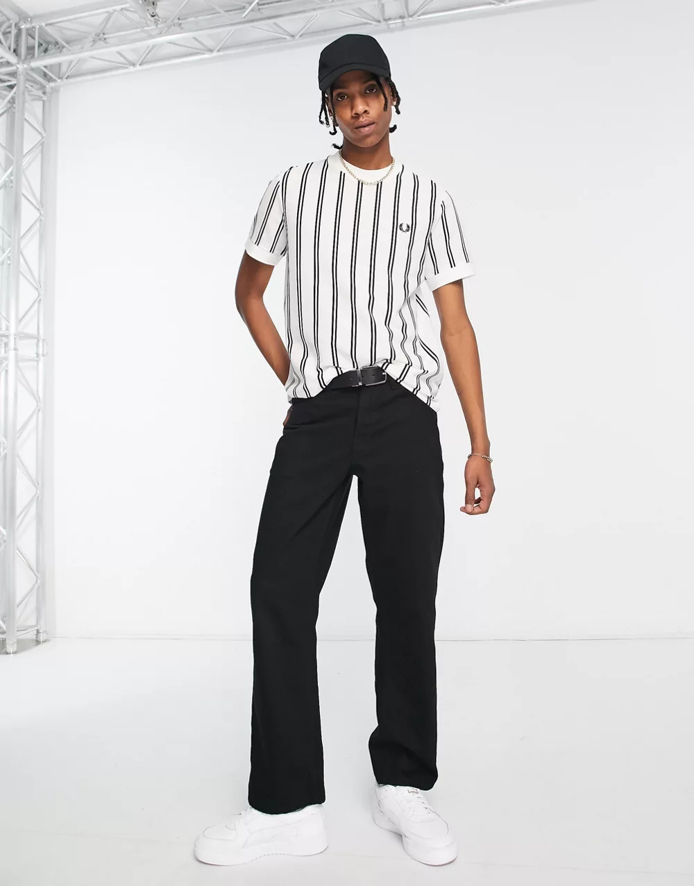 - Fred Perry fine stripe pique t-shirt in white