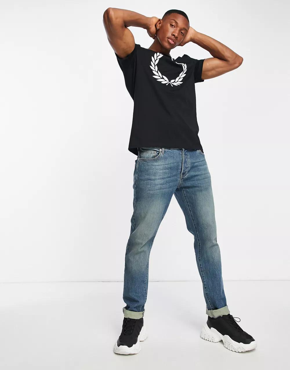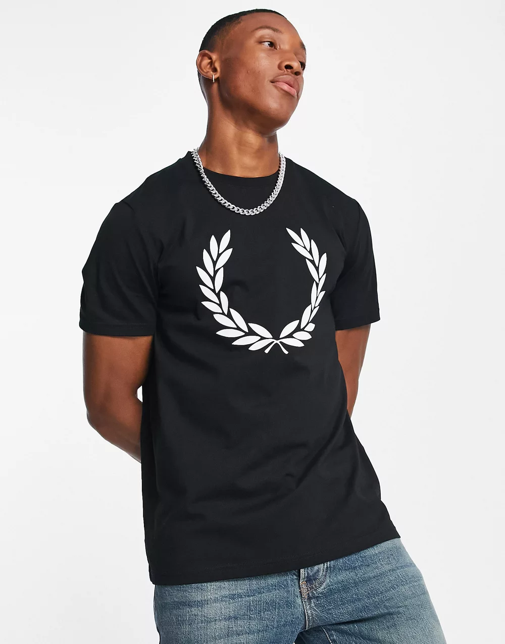 - Fred Perry large laurel wreath print t-shirt in black