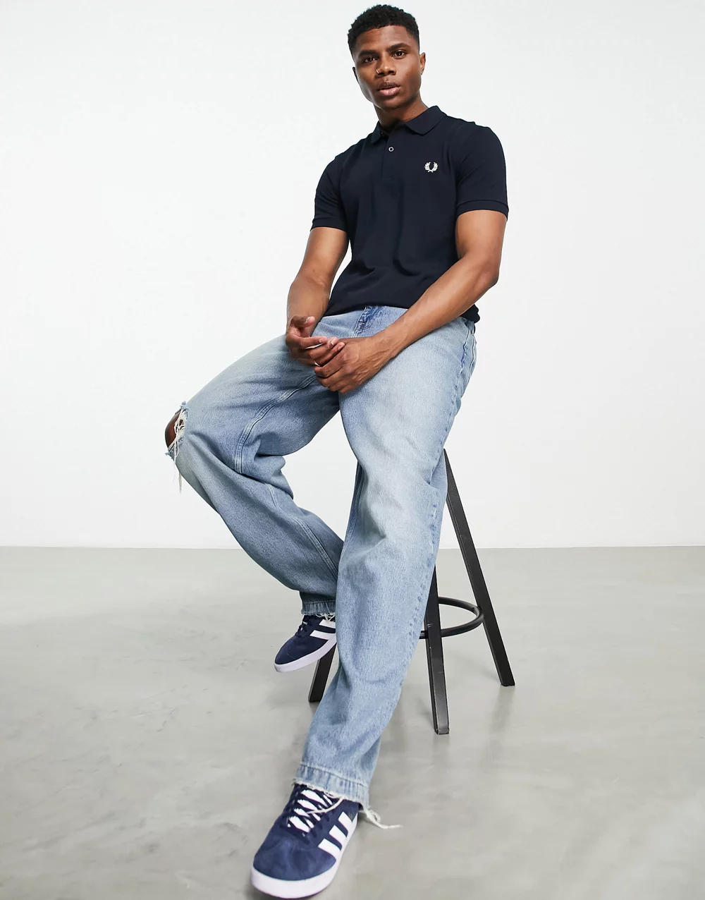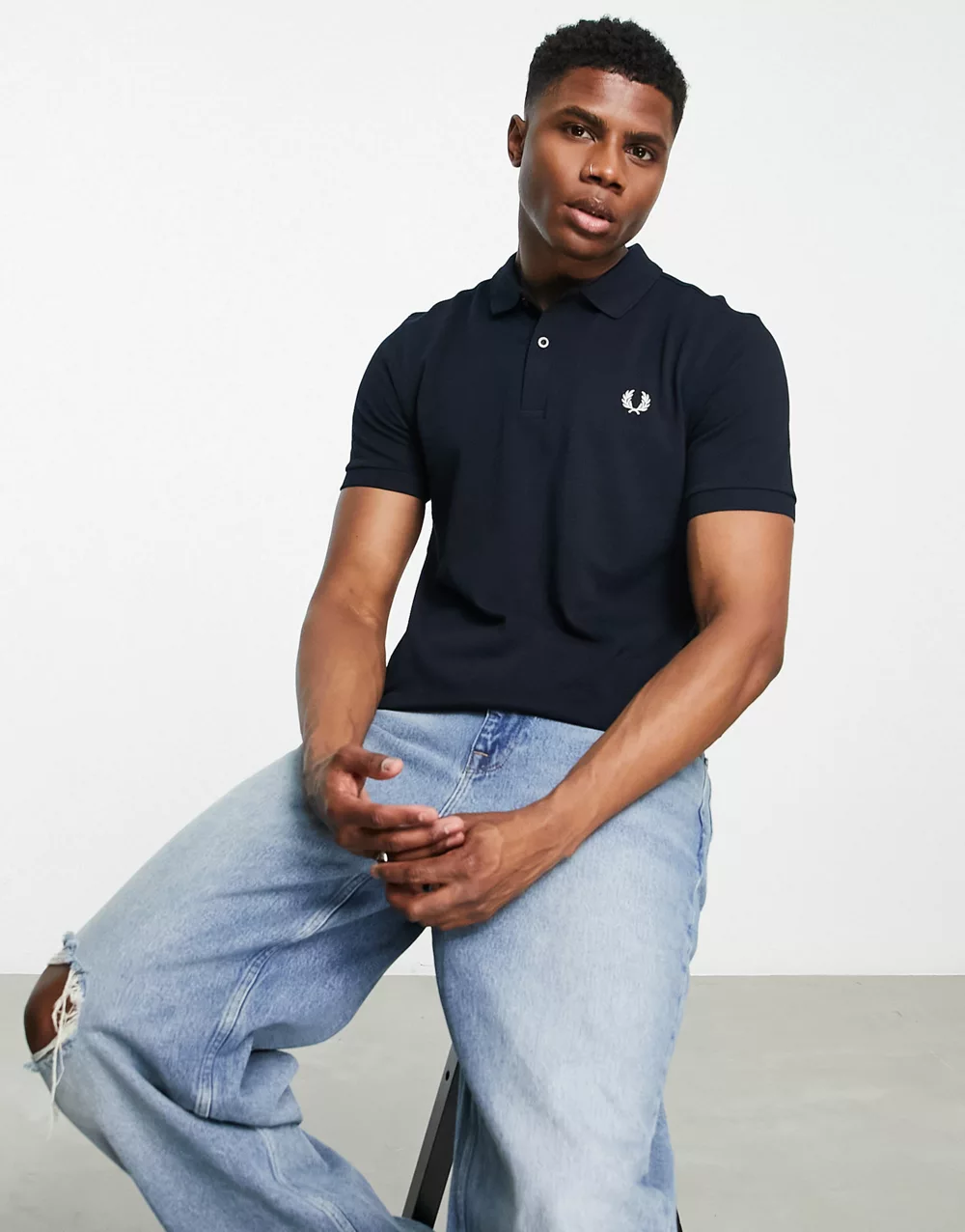 - Fred Perry plain polo shirt in navy
