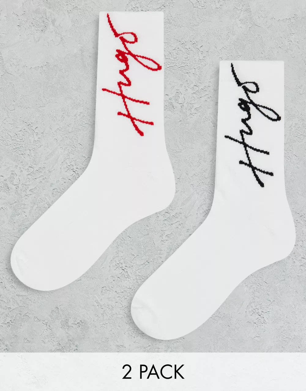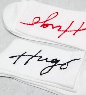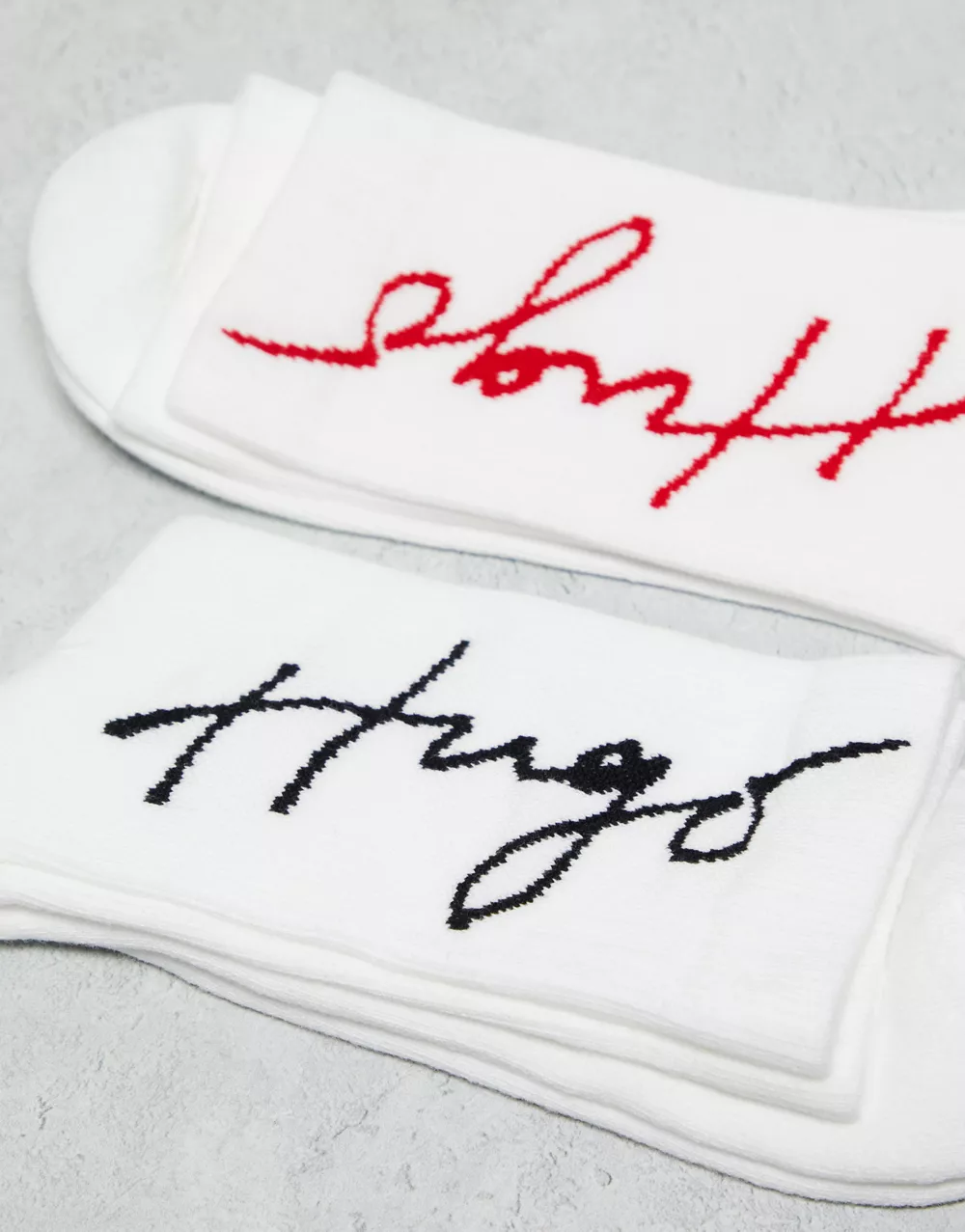 - HUGO Bodywear 2 pack crew socks with script logo in white
