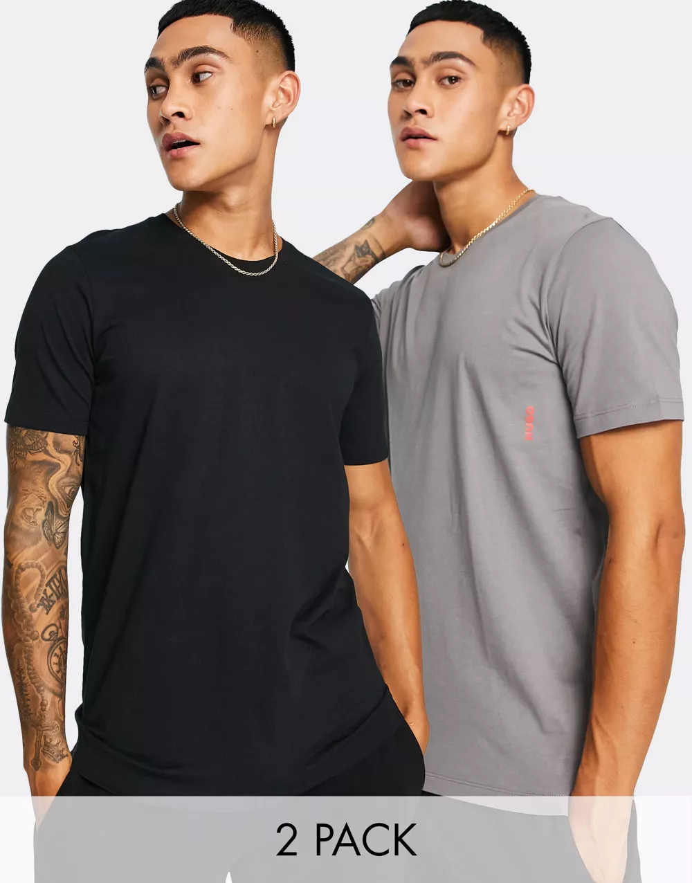 - HUGO Bodywear 2 pack t-shirt in grey and black