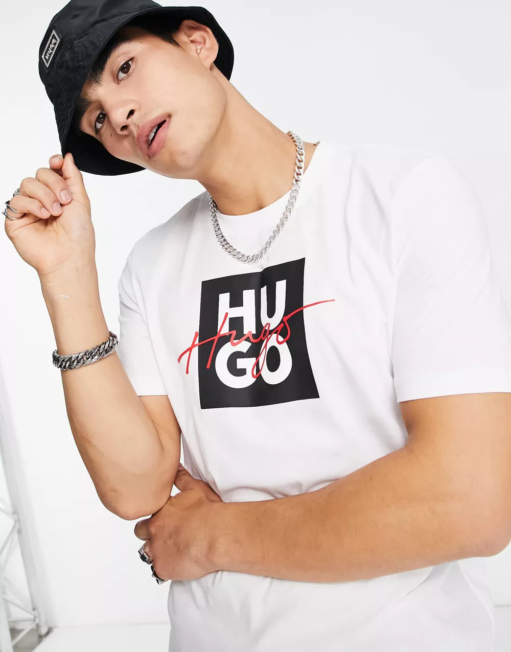 Armani Exchange large logo polo shirt in black