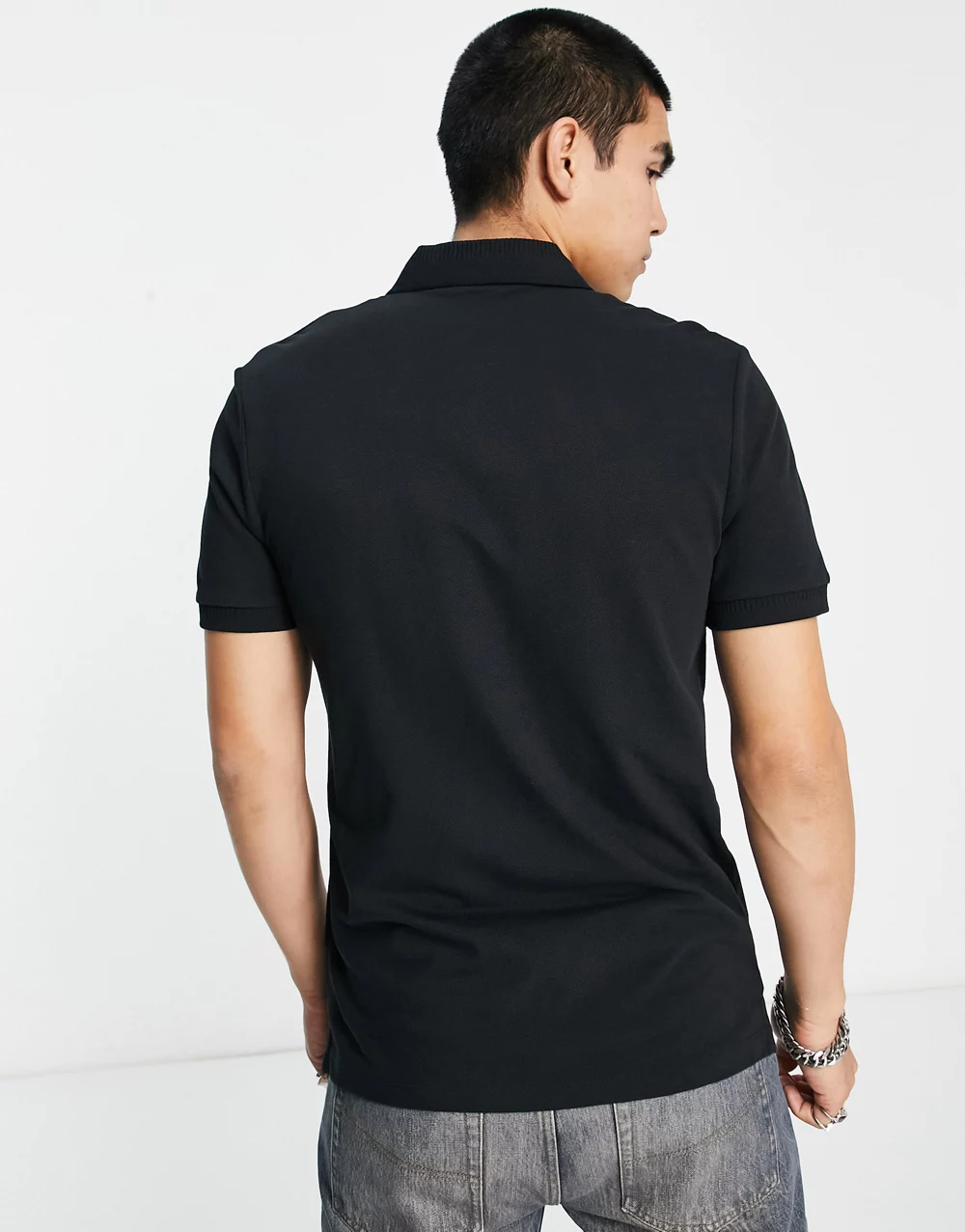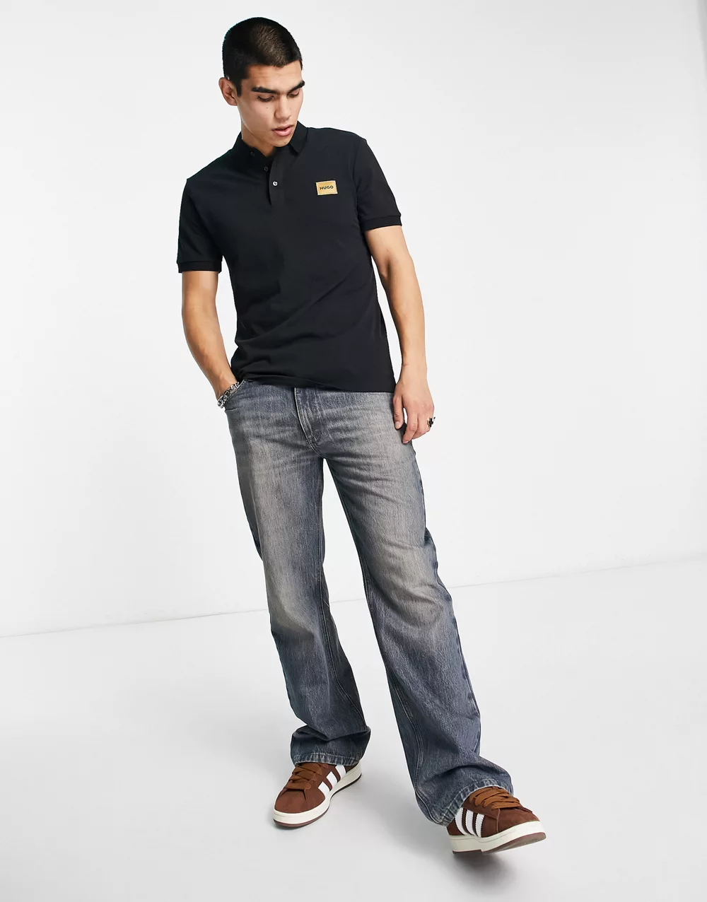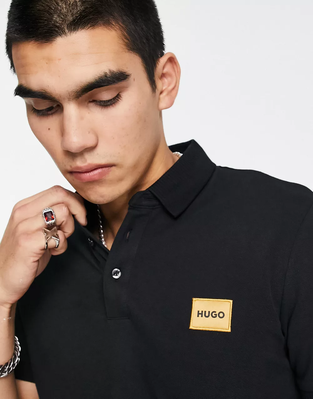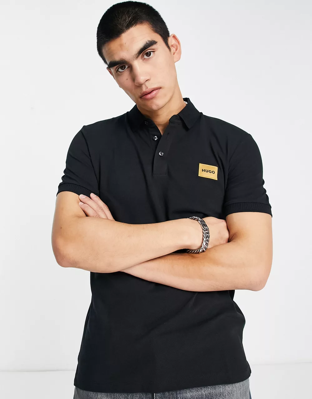 - HUGO Dereso slim fit gold logo polo shirt in black