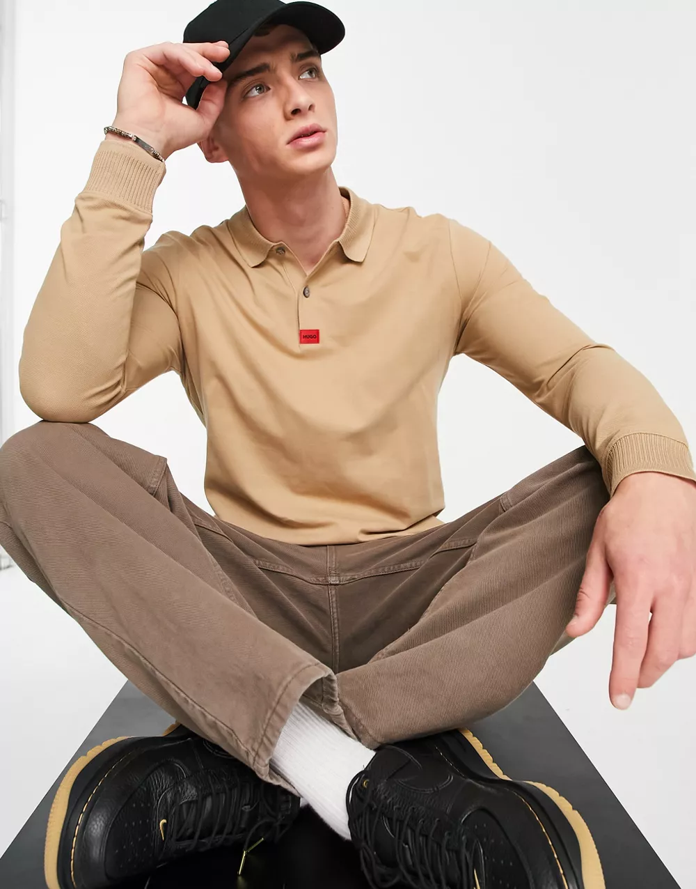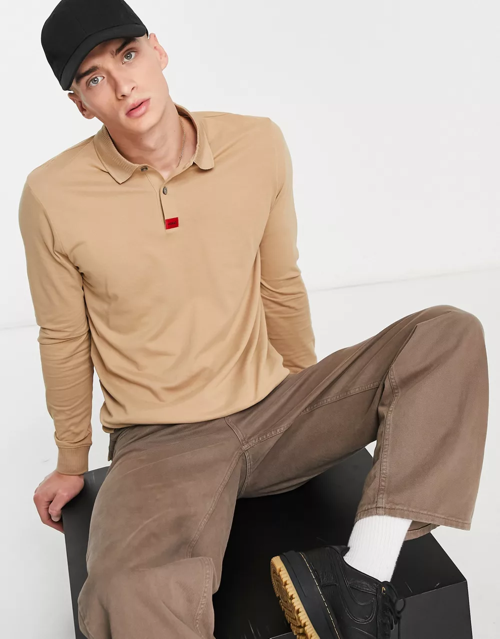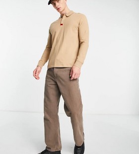- HUGO Deresolo222 long sleeve polo in beige 2327377457-50