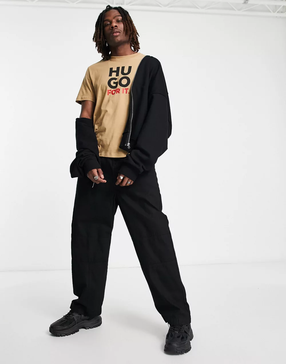 Tommy Jeans relaxed fit serif linear colourblock rugby polo in beige