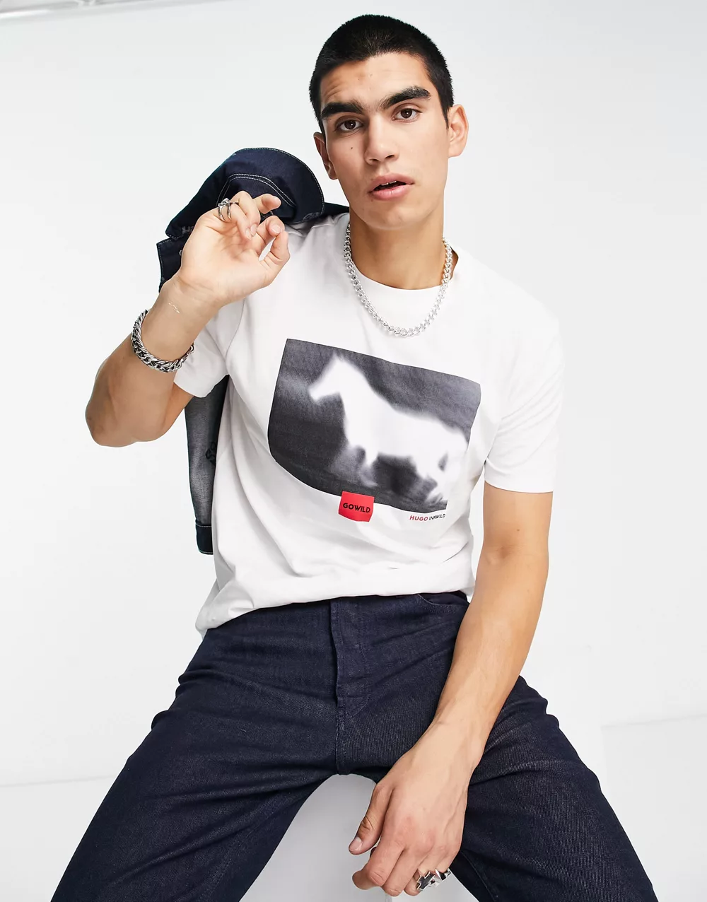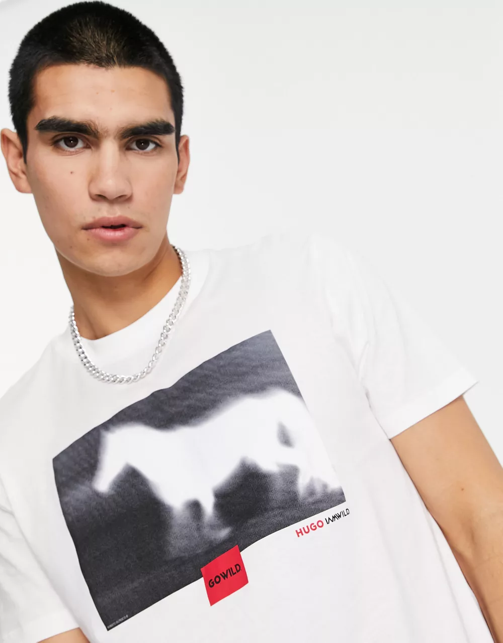 - HUGO x I AM WILD Dhetland t-shirt in white with front graphics