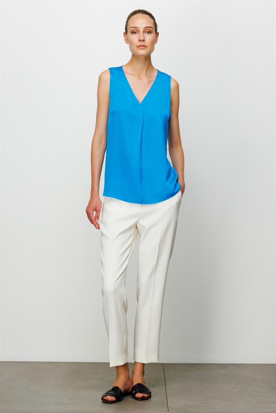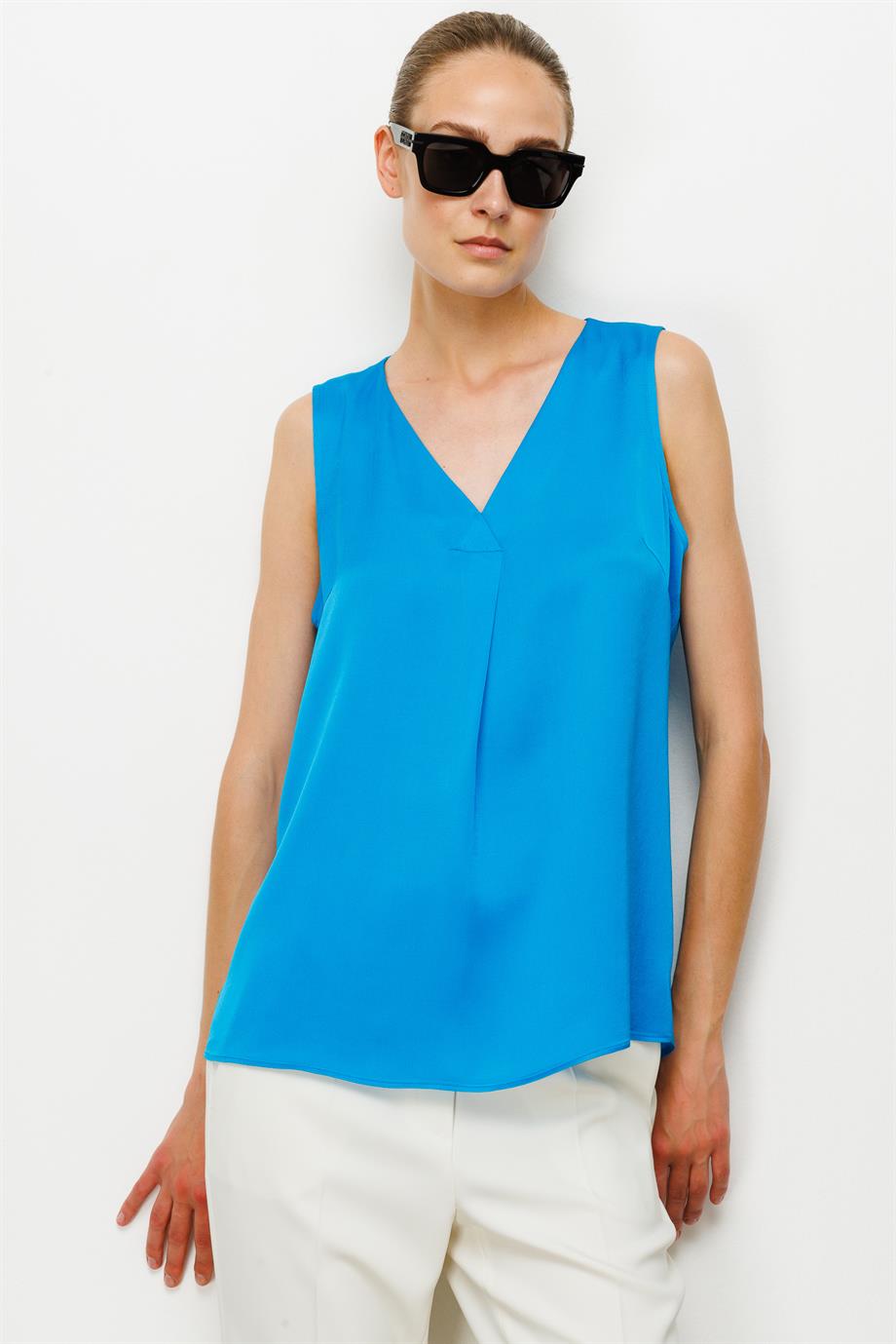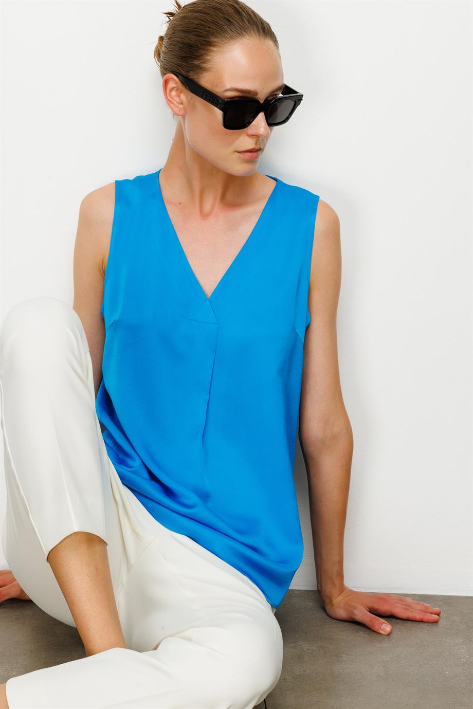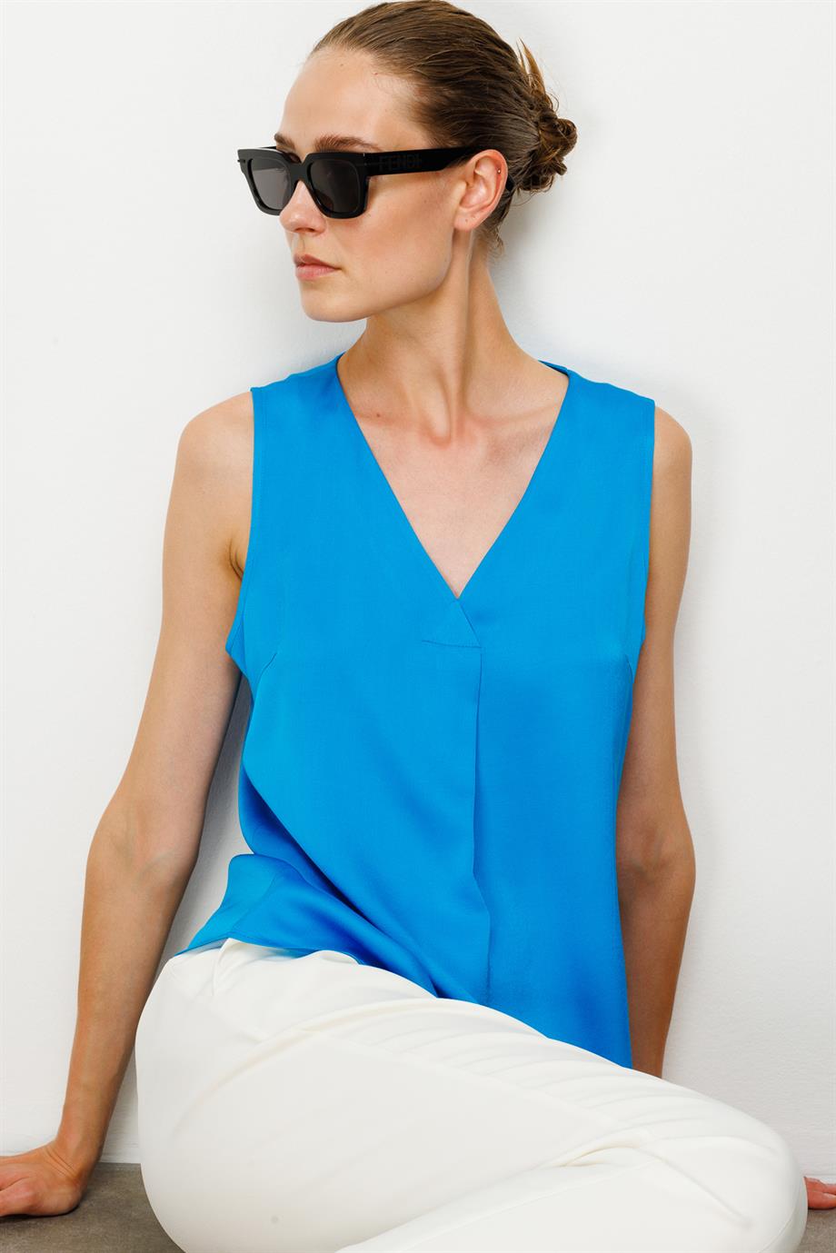 Красивая блузка без рукавов с V-образным вырезом и цвета морской волны - это изысканная и элегантная модель, которая привлечет внимание. Безрукавный дизайн создает легкий и воздушный образ, а V-образный вырез подчеркивает шею и декольте. Цвет морской волны придает блузке свежесть и яркость, идеально подходя для летнего сезона. Эта блузка станет прекрасным дополнением к вашему гардеробу для различных мероприятий.