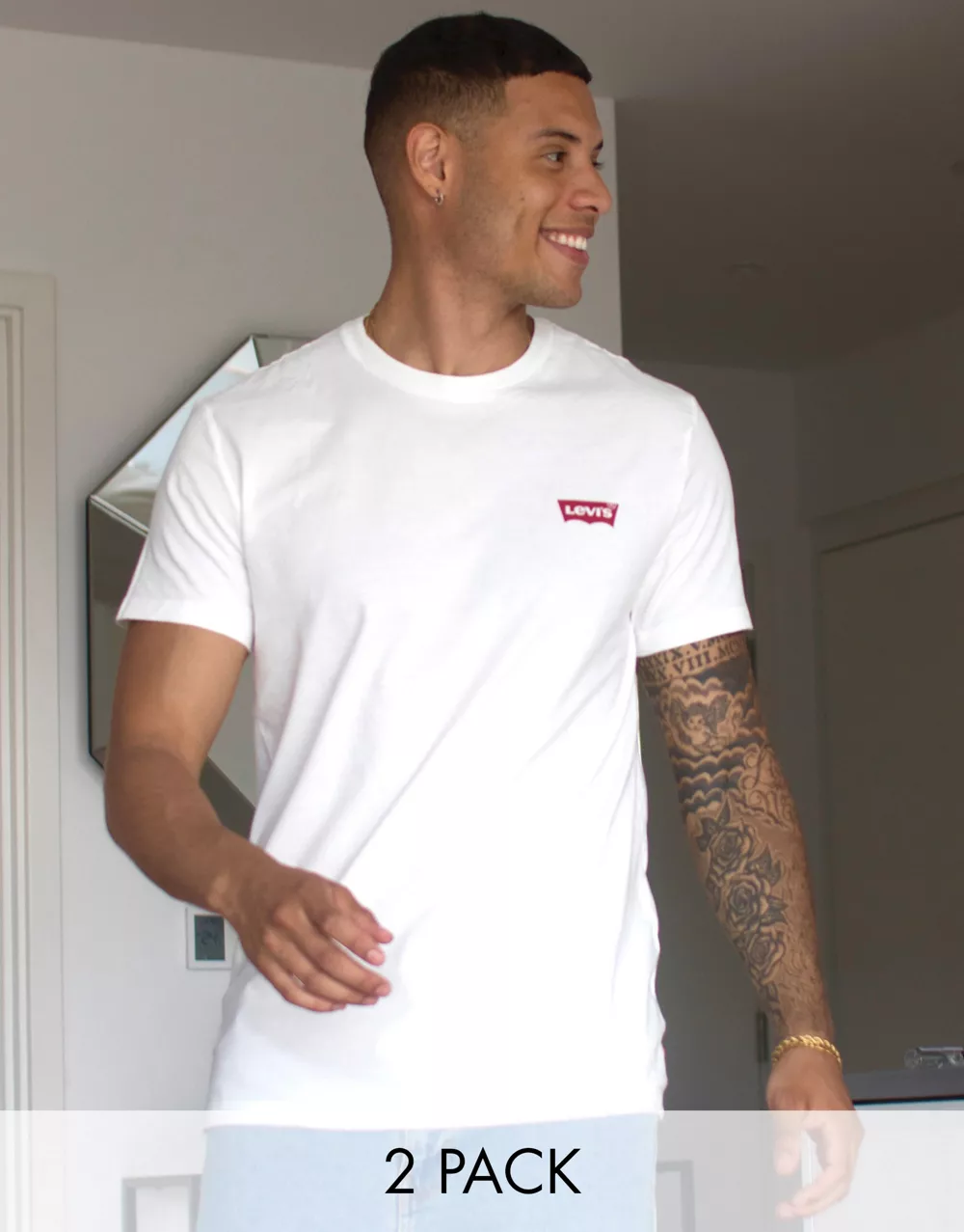 - Levi's 2 pack crewneck batwing logo t-shirt in white & grey marl