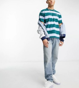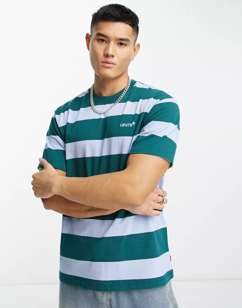 - Levi's oversized t-shirt in green/blue stripe with small logo
