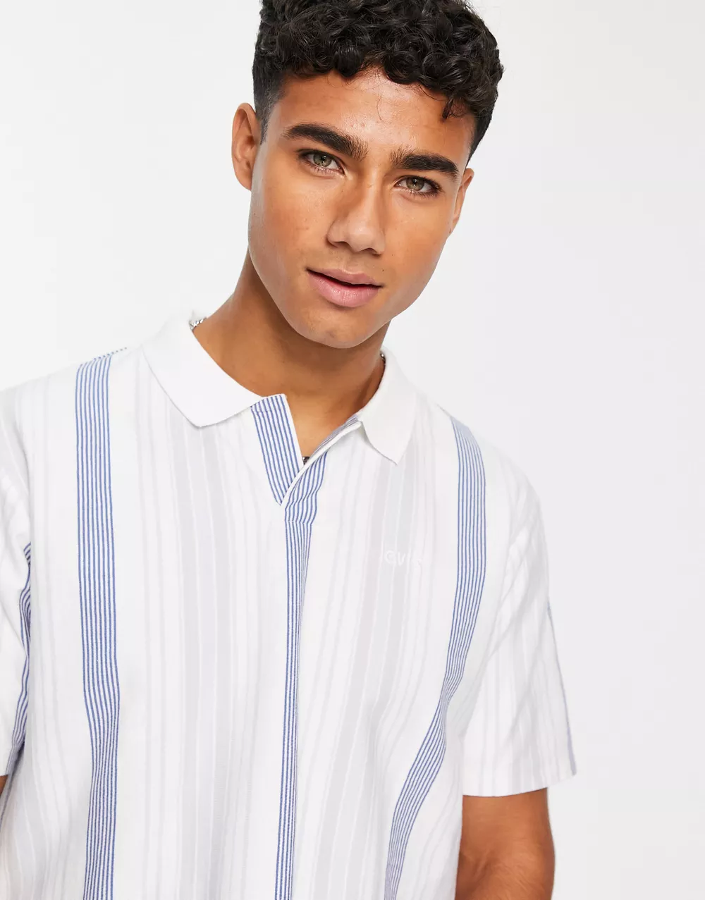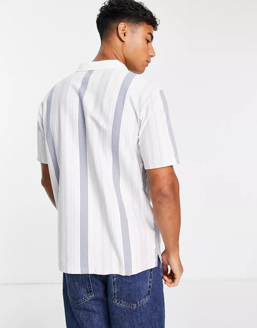 - Levi's Pool Side polo shirt in white blue stripe with small logo