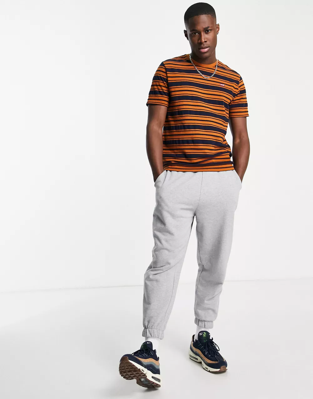 - Levi's striper t-shirt in navy/orange with small logo