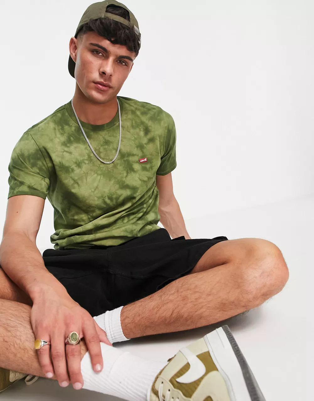 - Levi's t-shirt tie dye print with small batwing logo in olive green