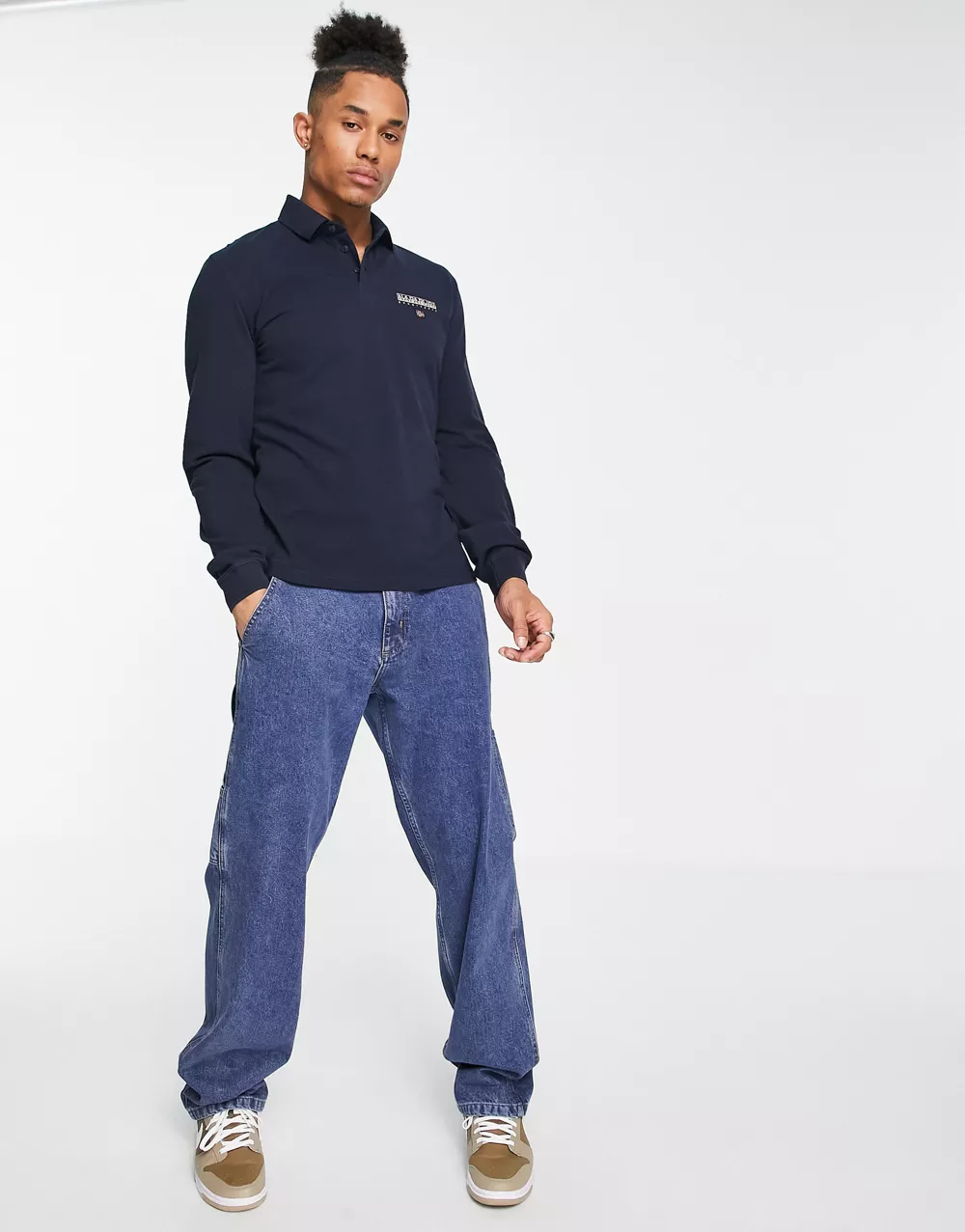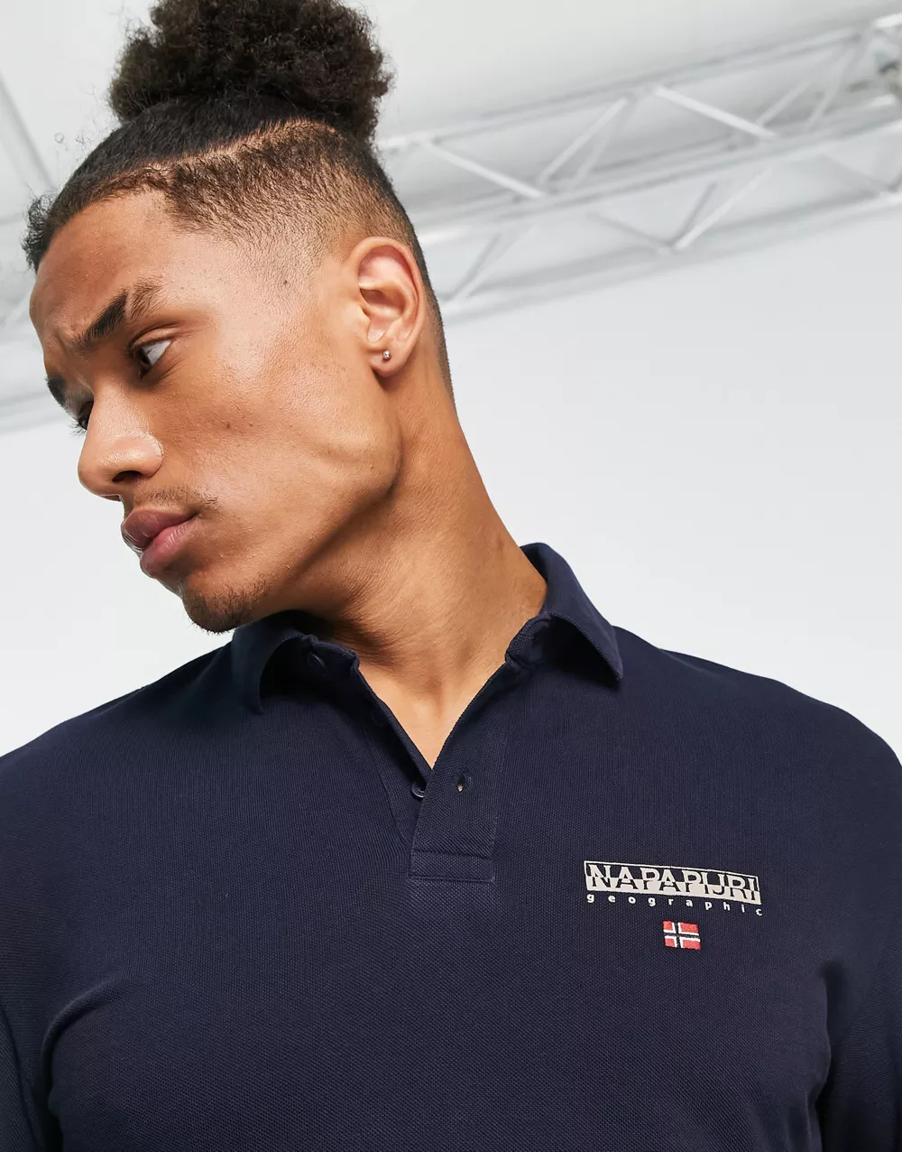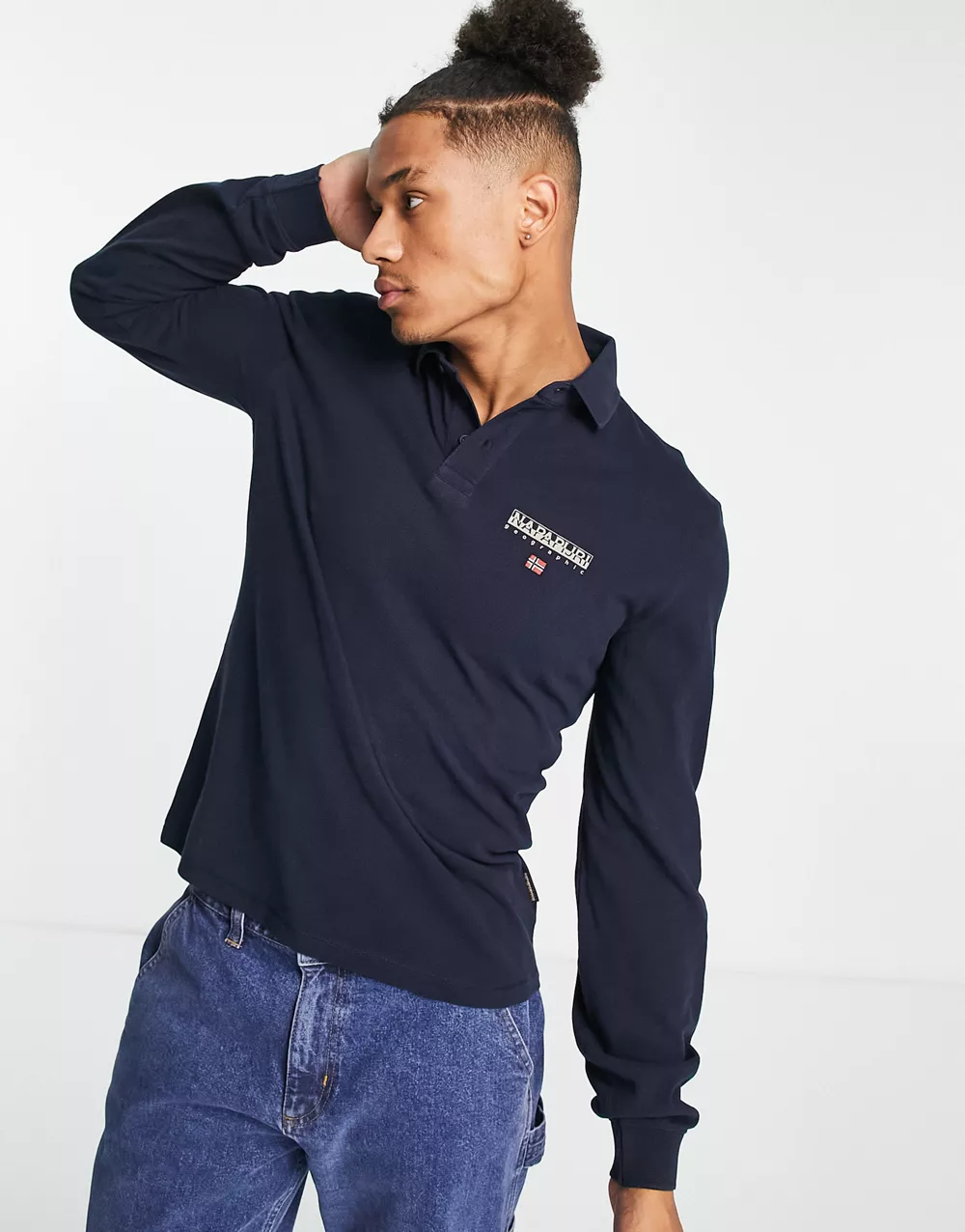 - Napapijri ayas left chest logo long sleeve polo in navy