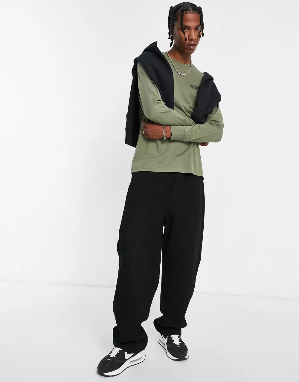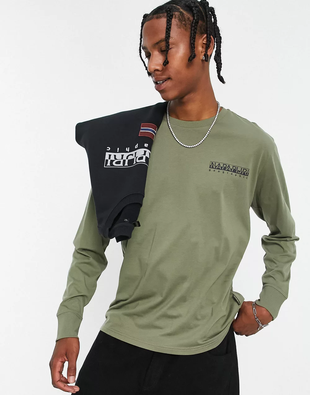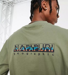 - Napapijri box logo back print long sleeve t-shirt in khaki