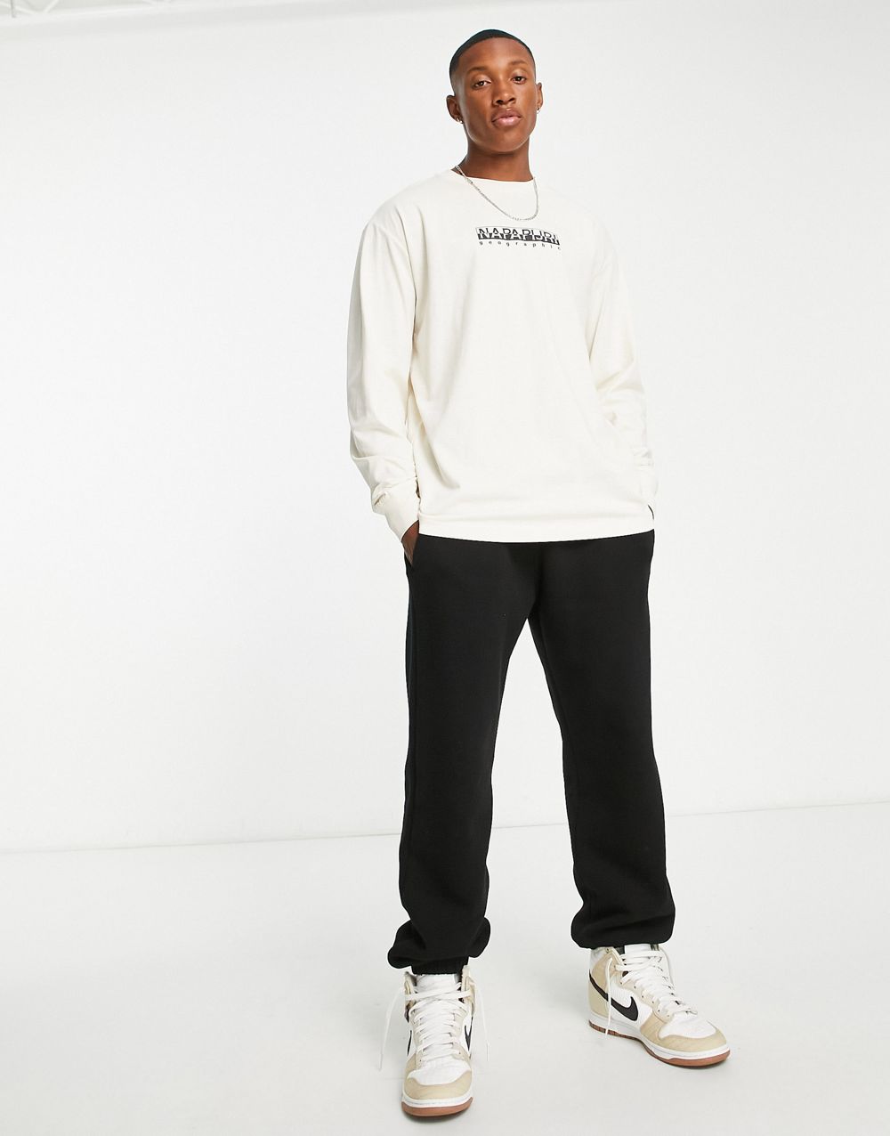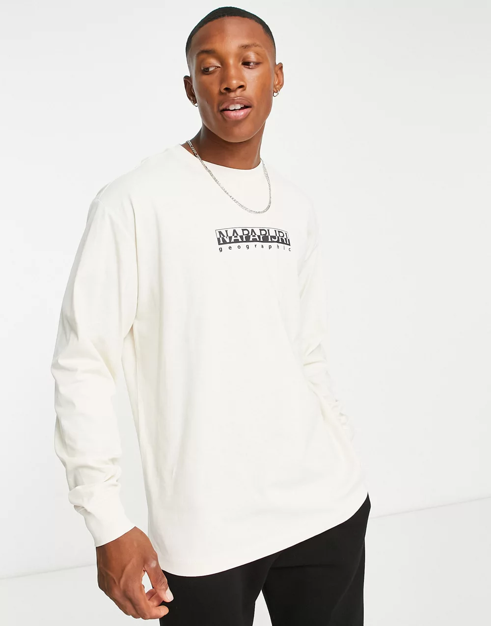 - Napapijri box logo long sleeve t-shirt in off white