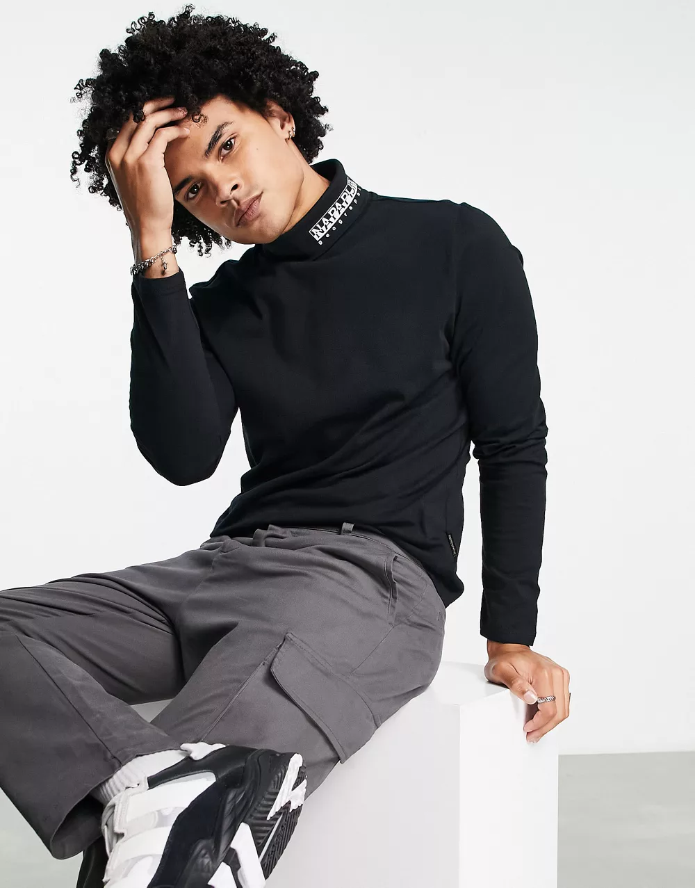 - Napapijri long sleeve t-shirt with high neck box logo in black
