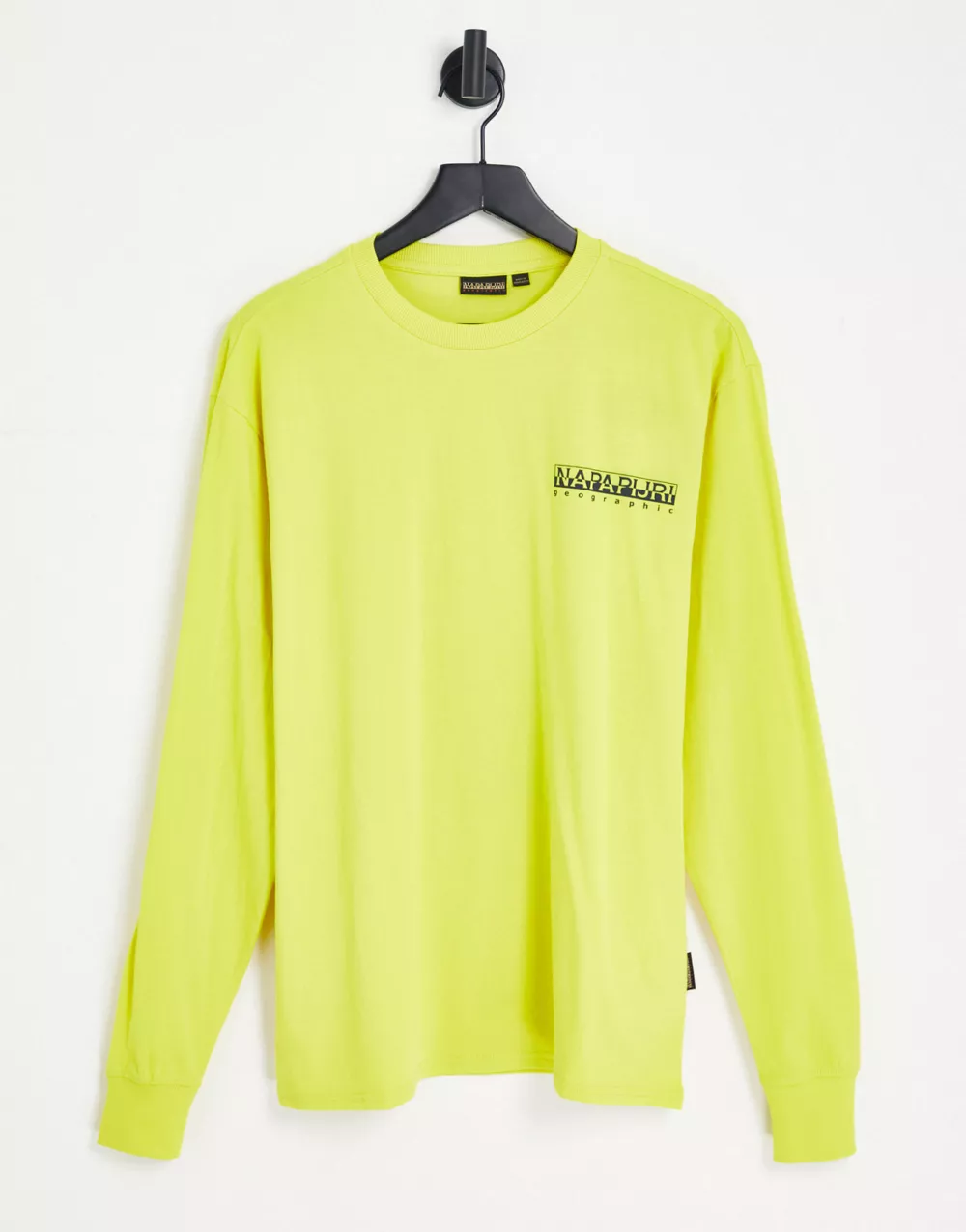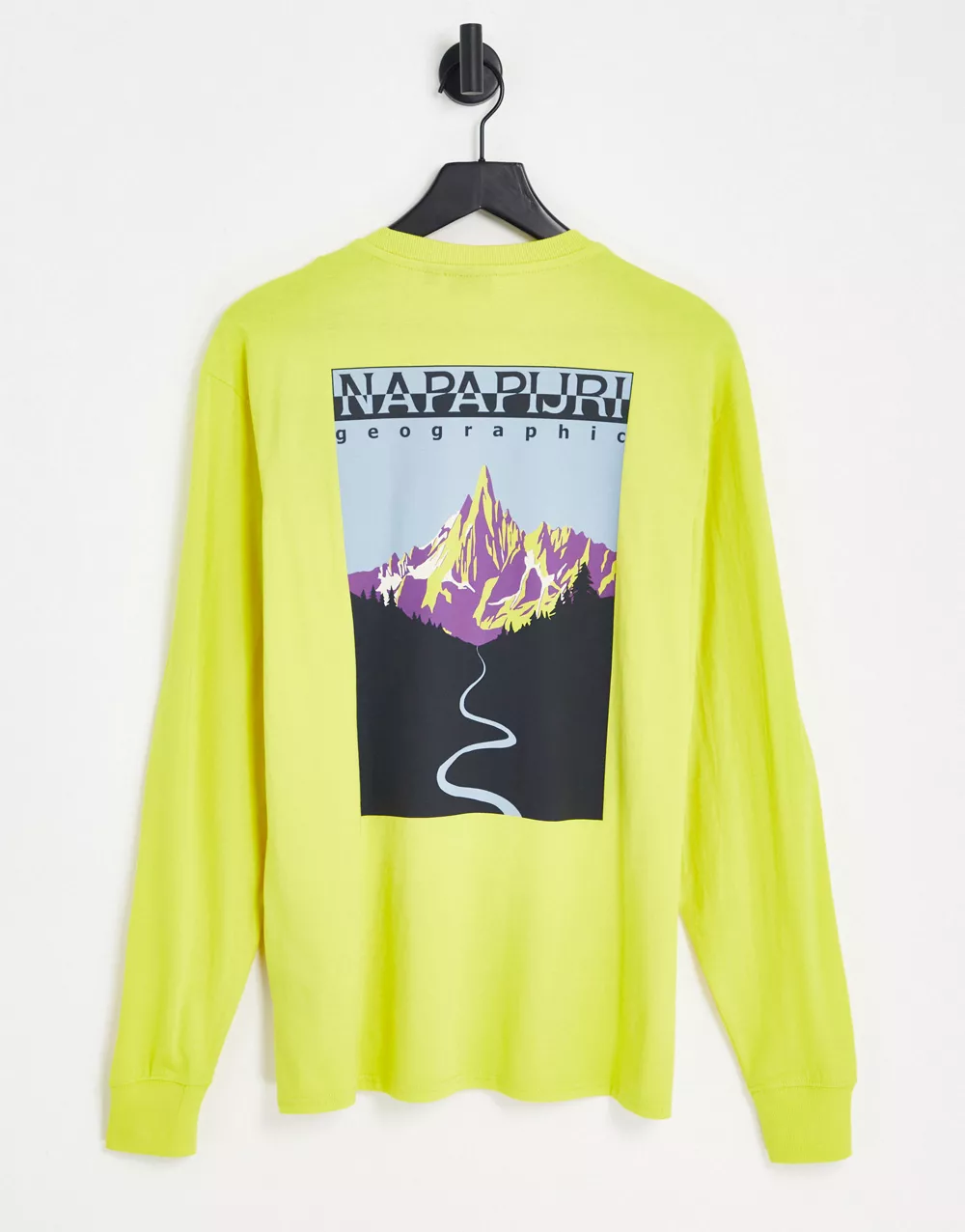 - Napapijri Quintiono back print long sleeve t-shirt in lime green