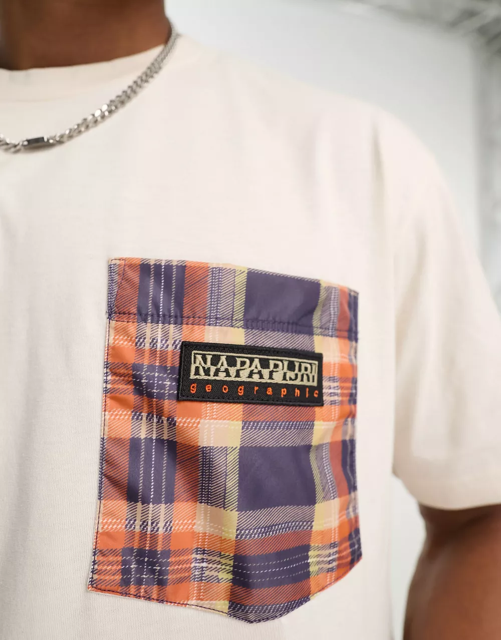 - Napapijri x Liberty Candolle patch pocket t-shirt in off white