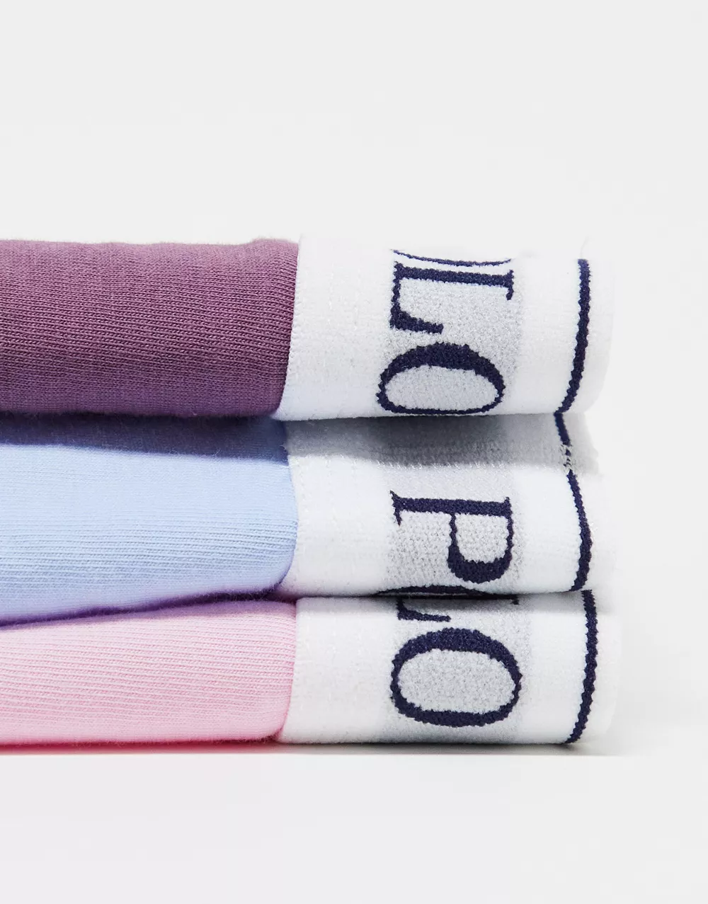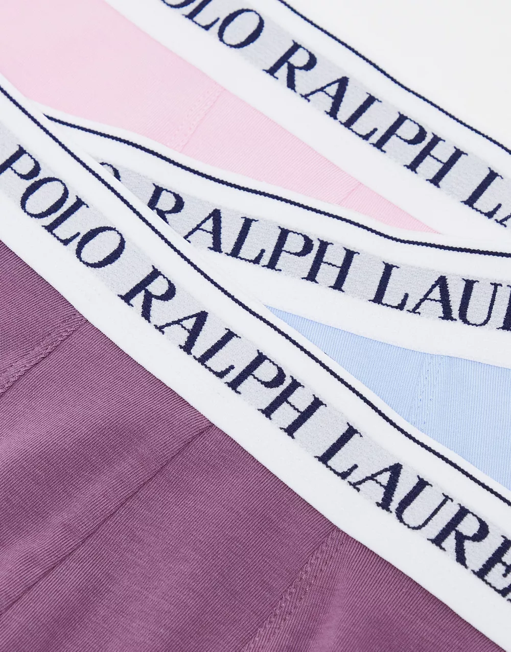 - Polo Ralph Lauren 3 pack trunks in purple/blue/pink with contrasting logo waistband