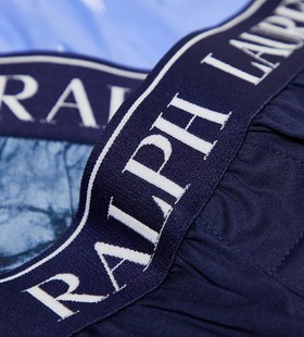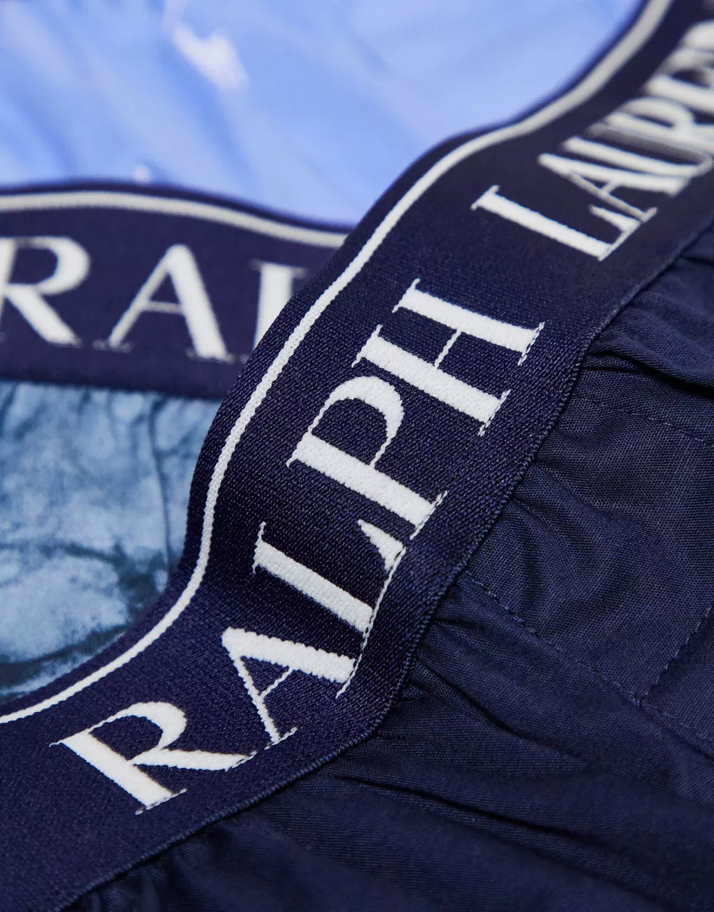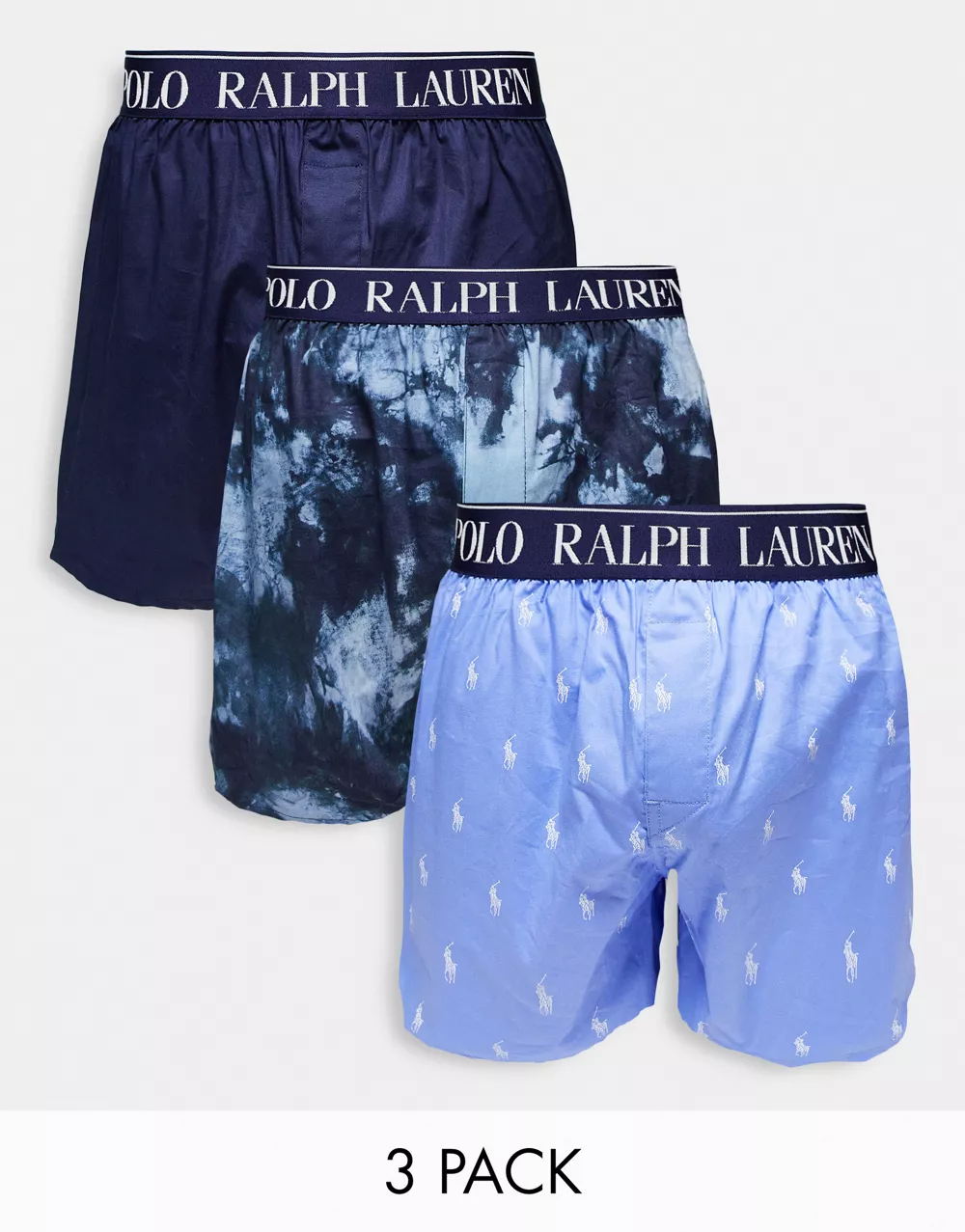 - Polo Ralph Lauren 3 pack woven boxer shorts in blue all over pony, navy and tie dye with logo waistband