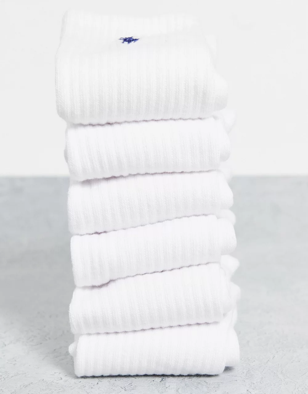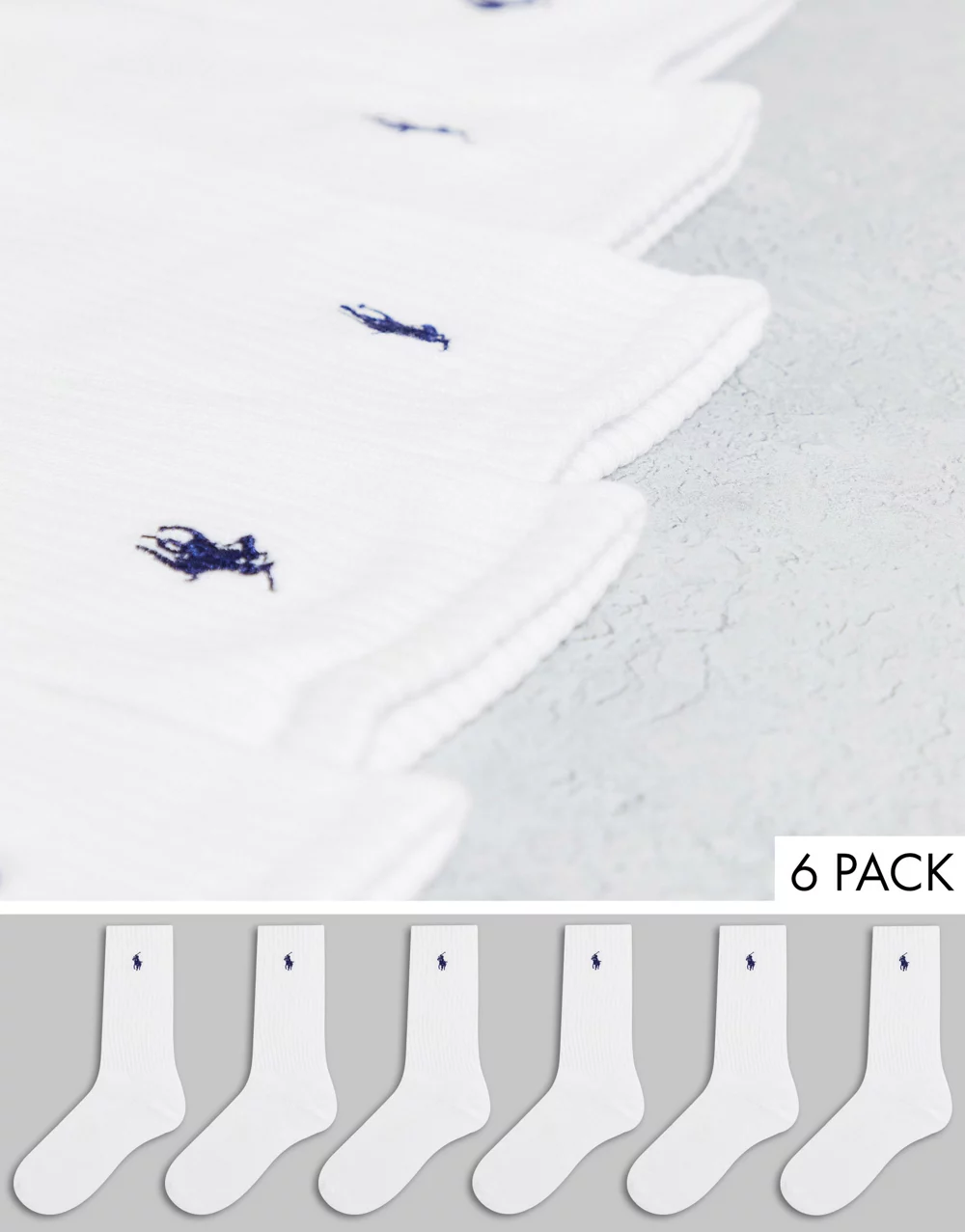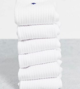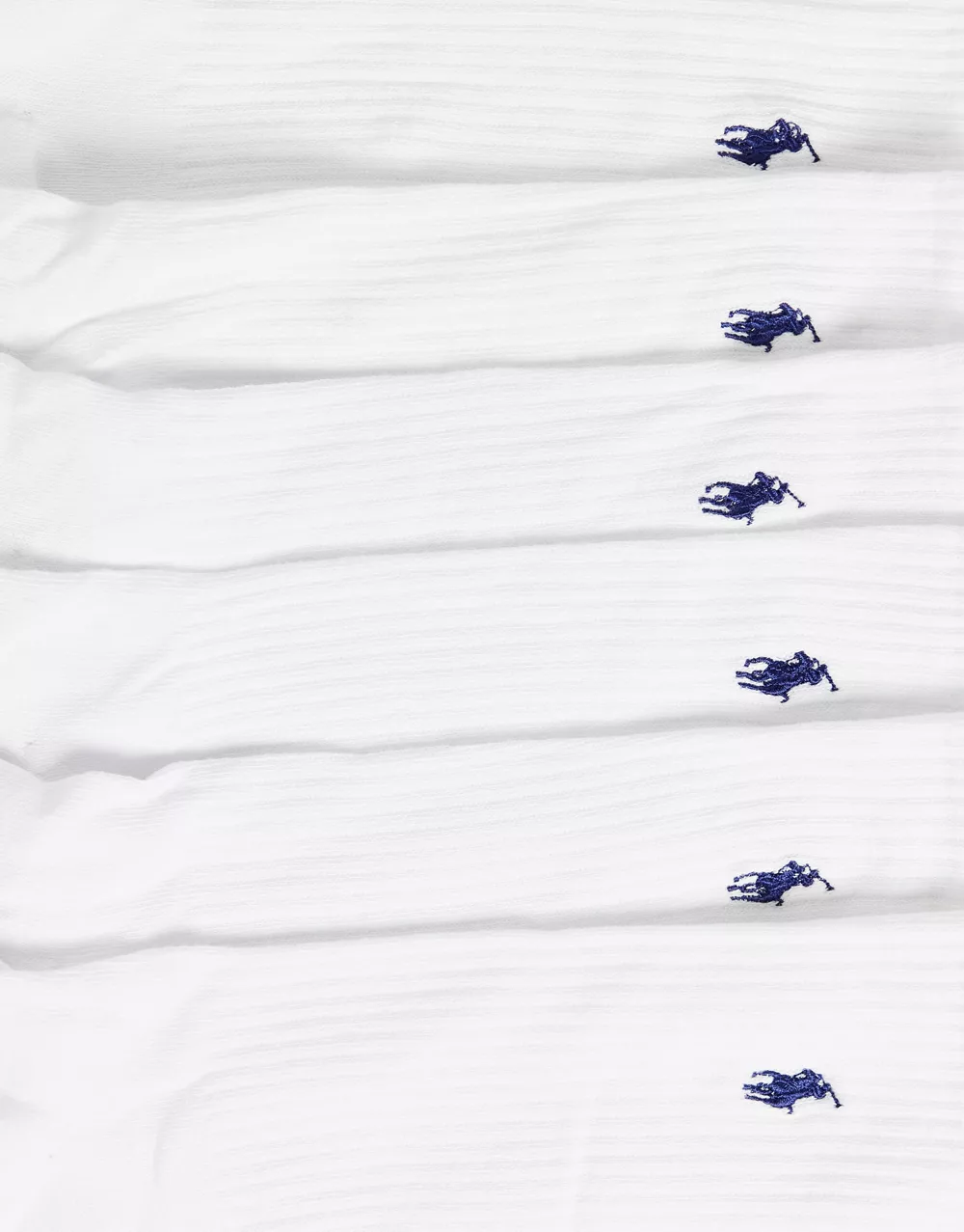 - Polo Ralph Lauren 6 pack sport socks in white with pony logo