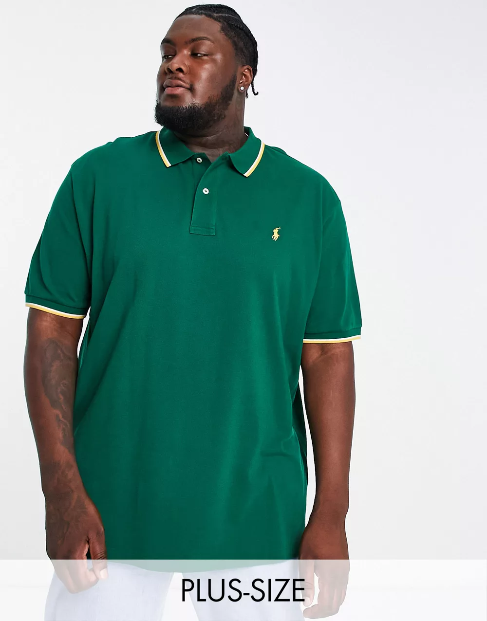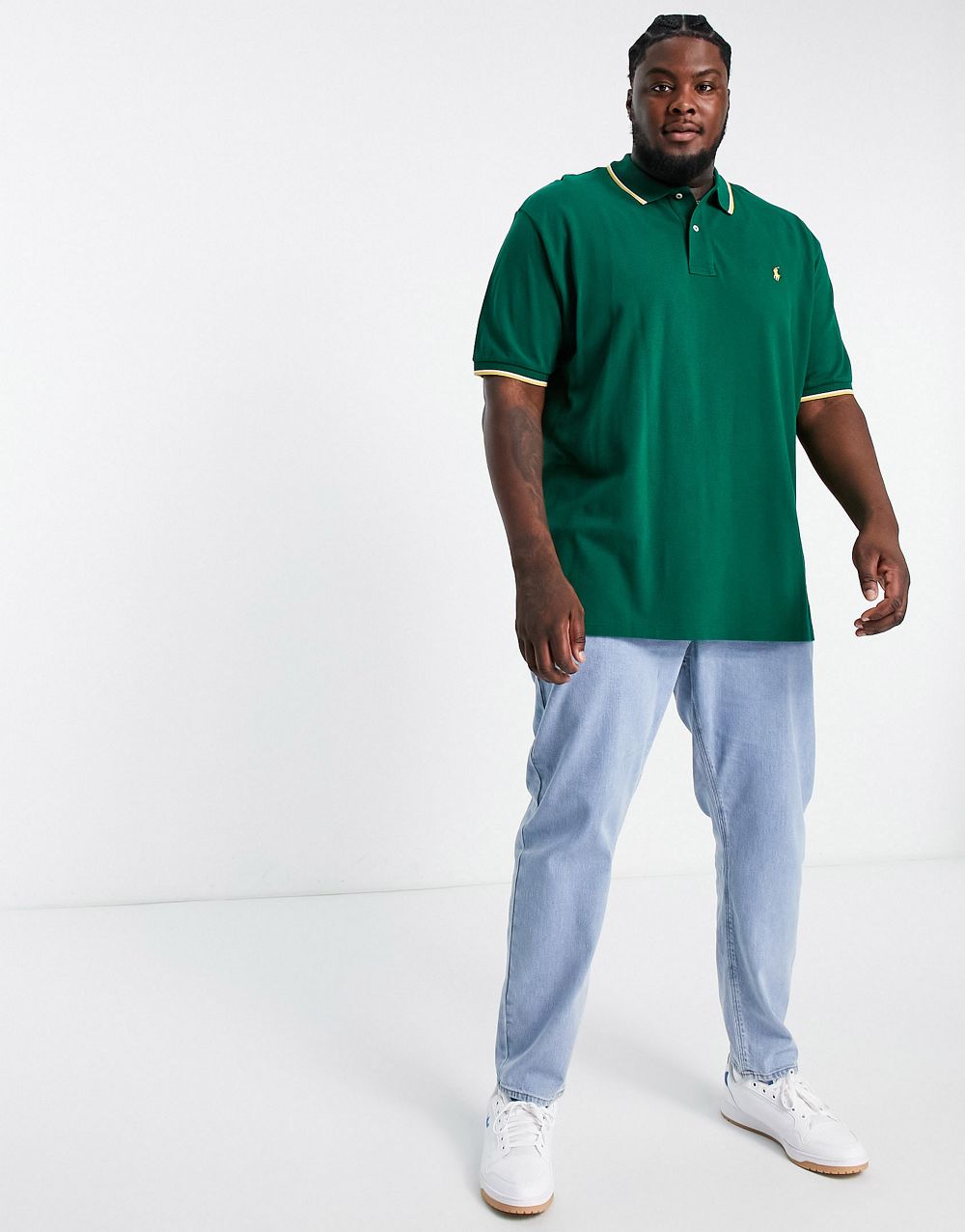 - Polo Ralph Lauren Big & Tall regular fit pique polo with tipped collar in dark green
