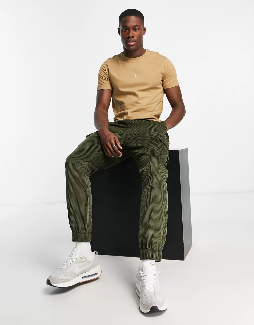 - Polo Ralph Lauren central icon logo t-shirt custom fit in tan