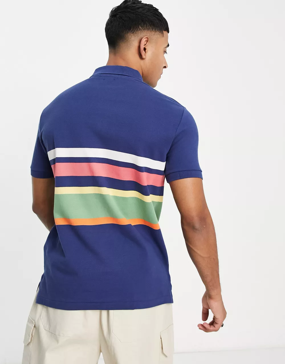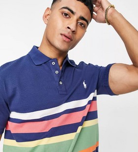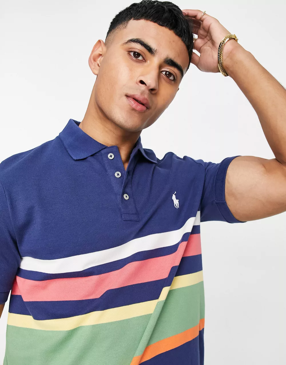 - Polo Ralph Lauren icon logo chest multi stripe pique polo in navy