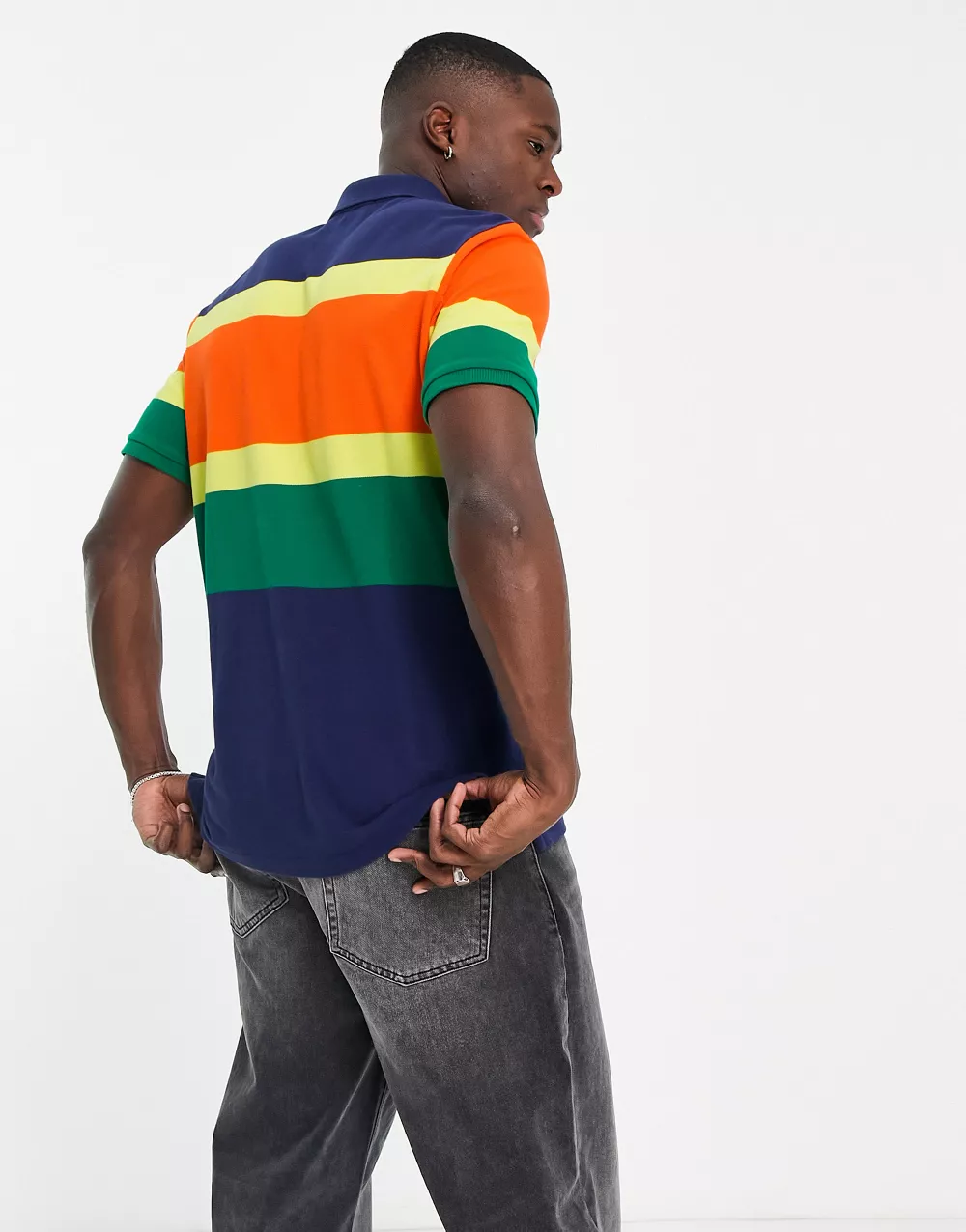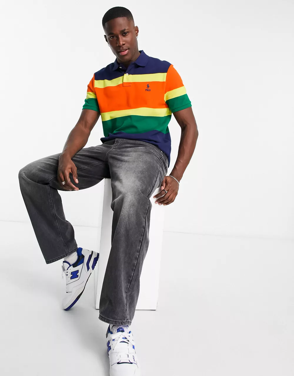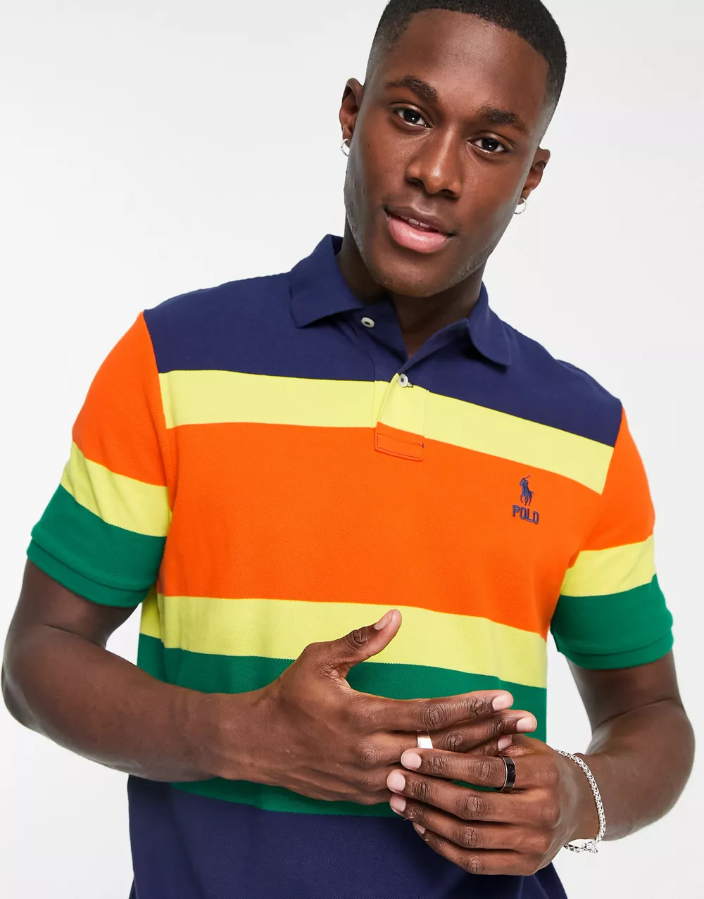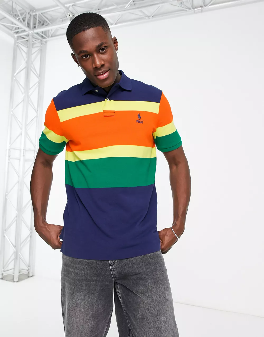 - Polo Ralph Lauren icon logo chest stripe pique polo classic oversized fit in dark blue multi