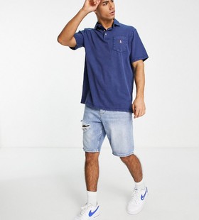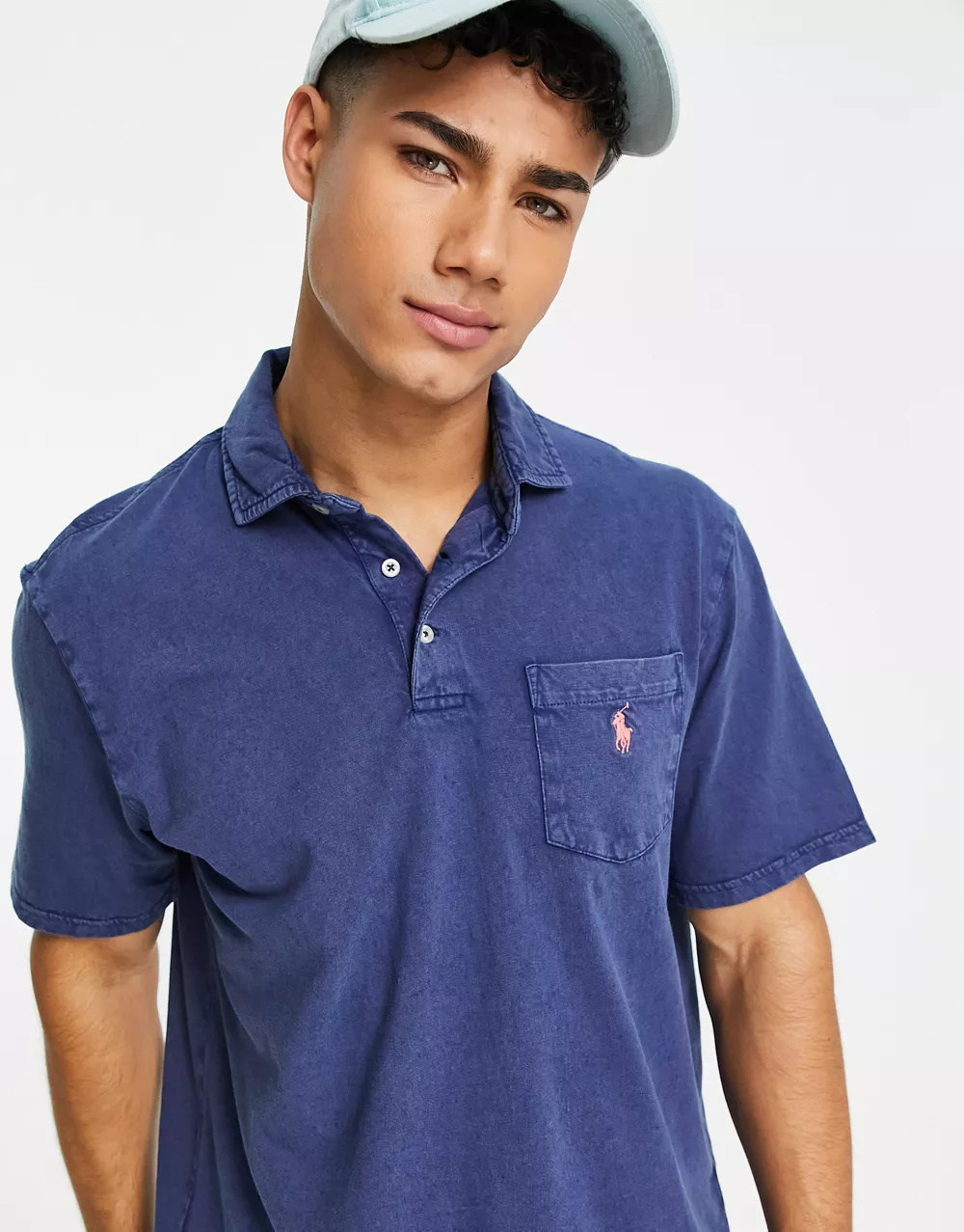 - Polo Ralph Lauren icon logo pocket cotton linen polo in navy