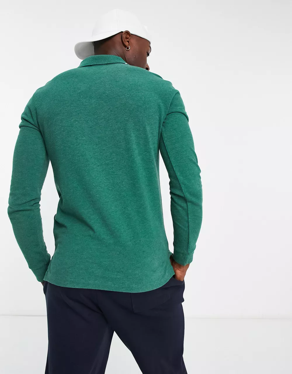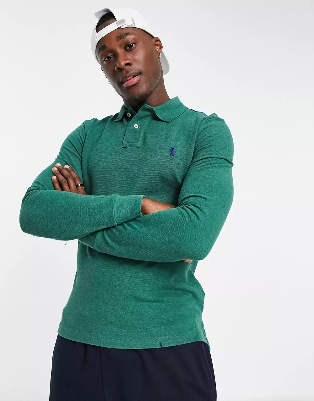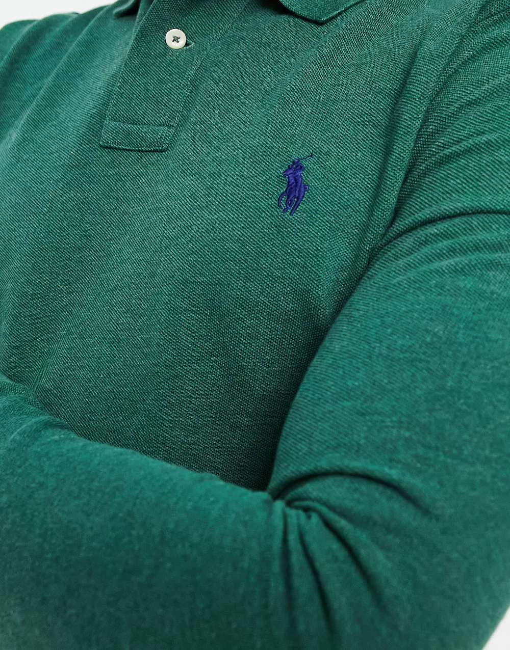 - Polo Ralph Lauren icon logo slim fit long sleeve pique polo in green marl
