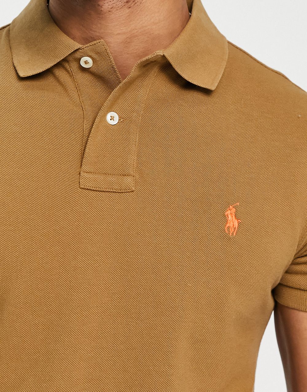 - Polo Ralph Lauren icon logo slim fit pique polo in tan