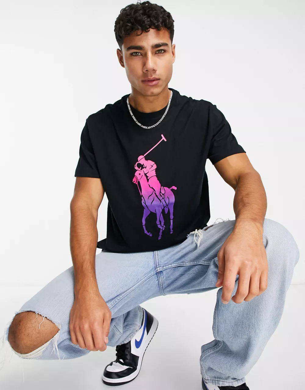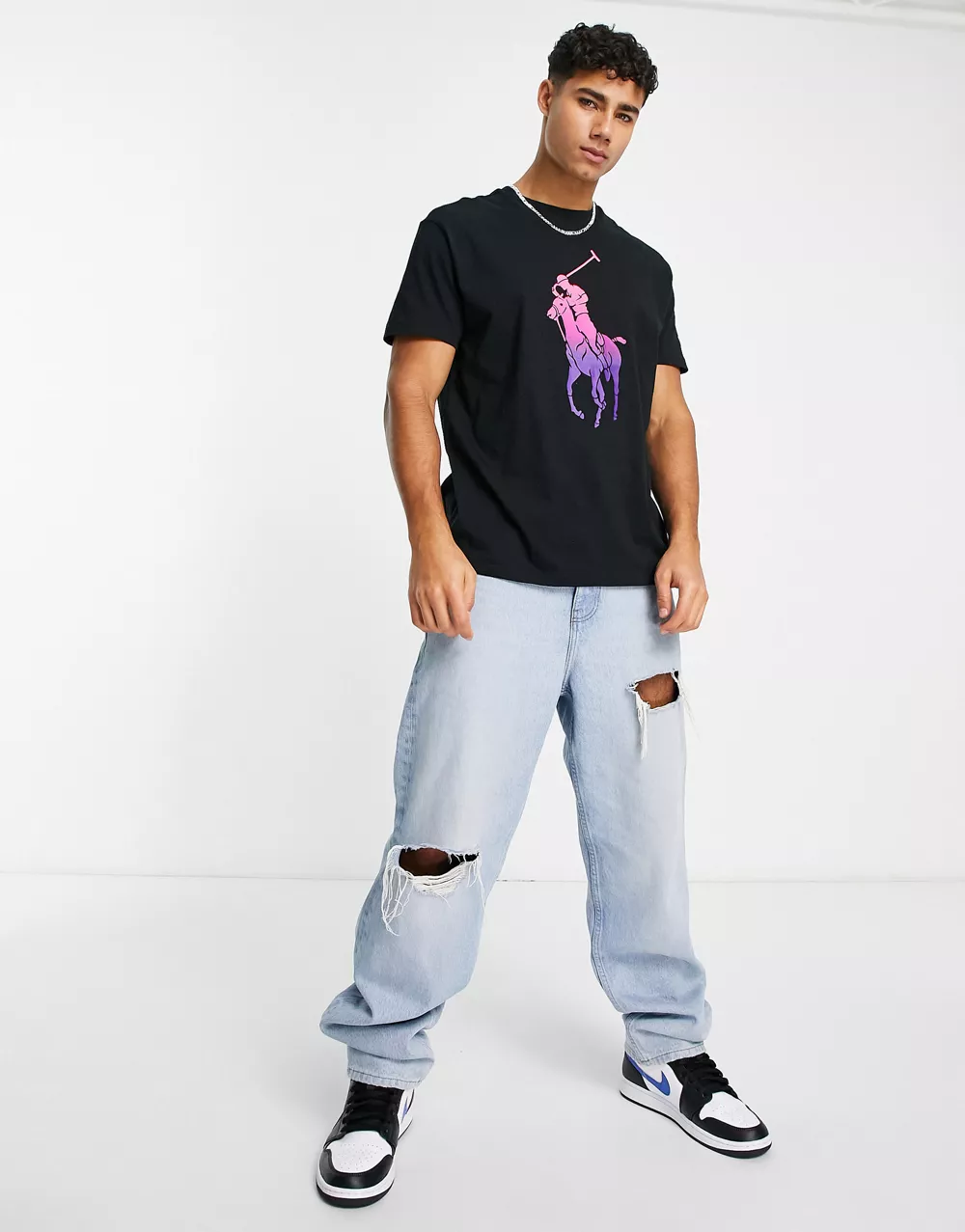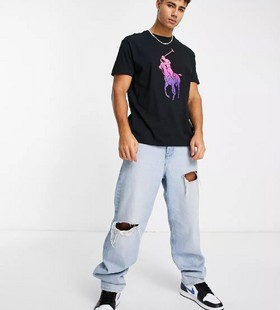 - Polo Ralph Lauren large ombre logo classic oversized fit t-shirt in black