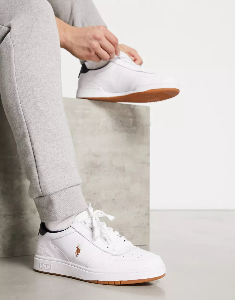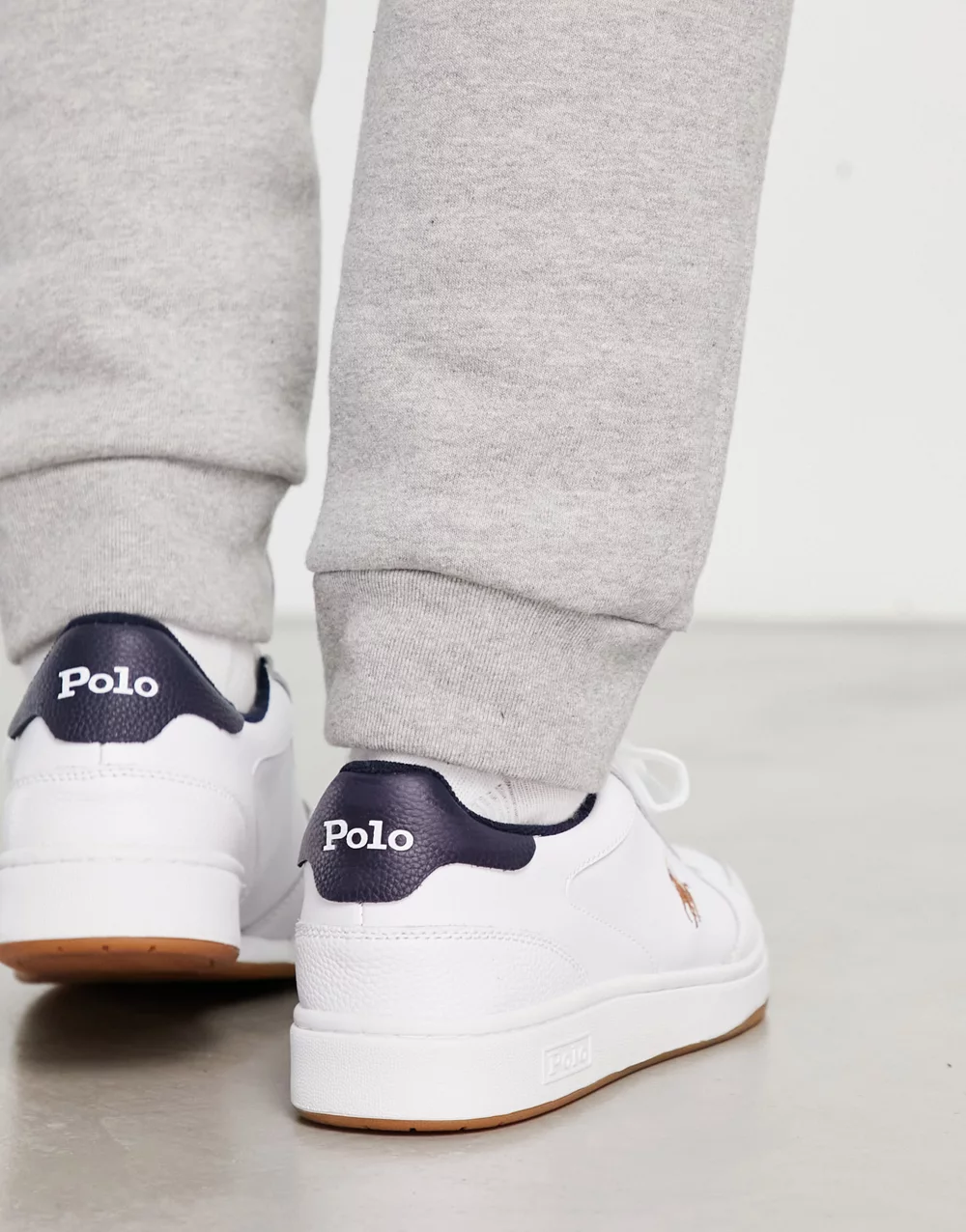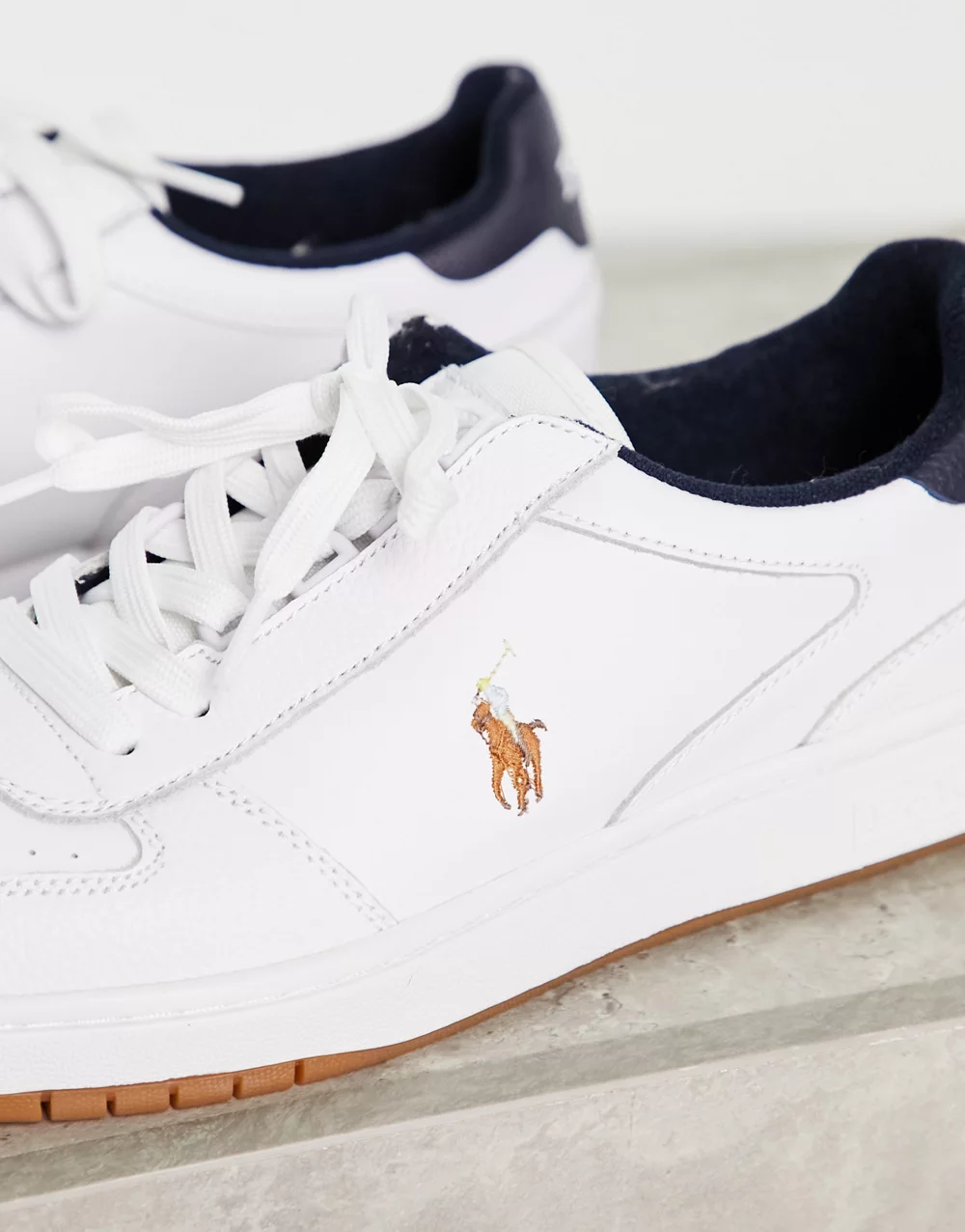 - Polo Ralph Lauren leather polo court in white with pony logo