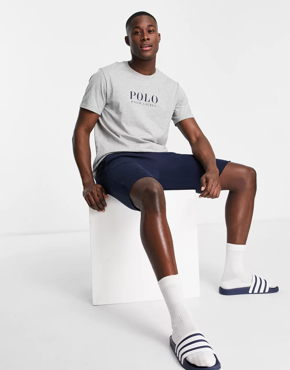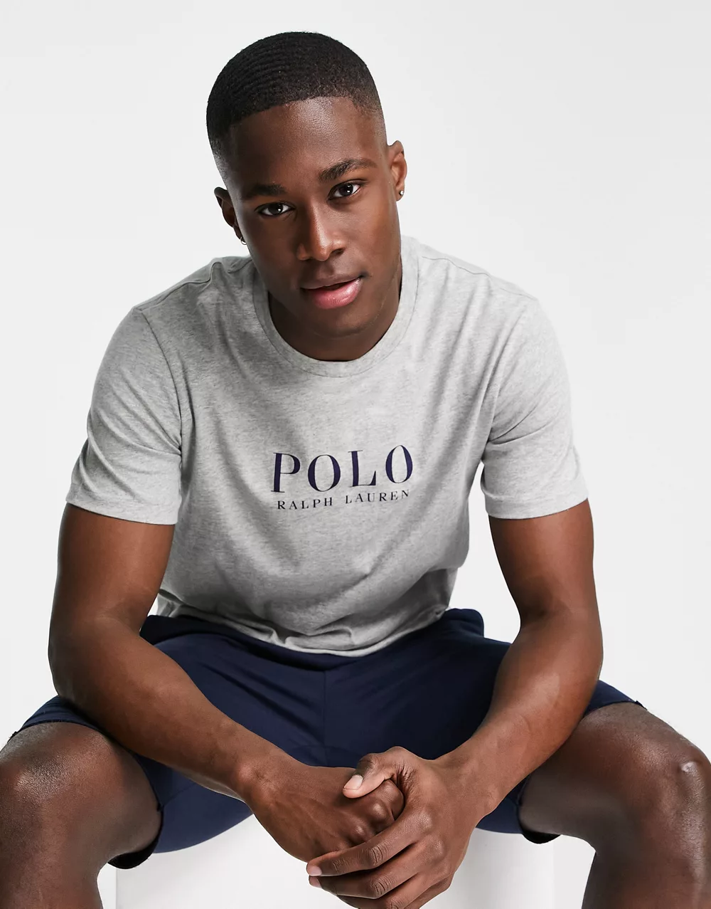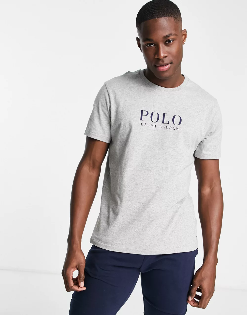- Polo Ralph Lauren lounge t-shirt in grey with chest text logo