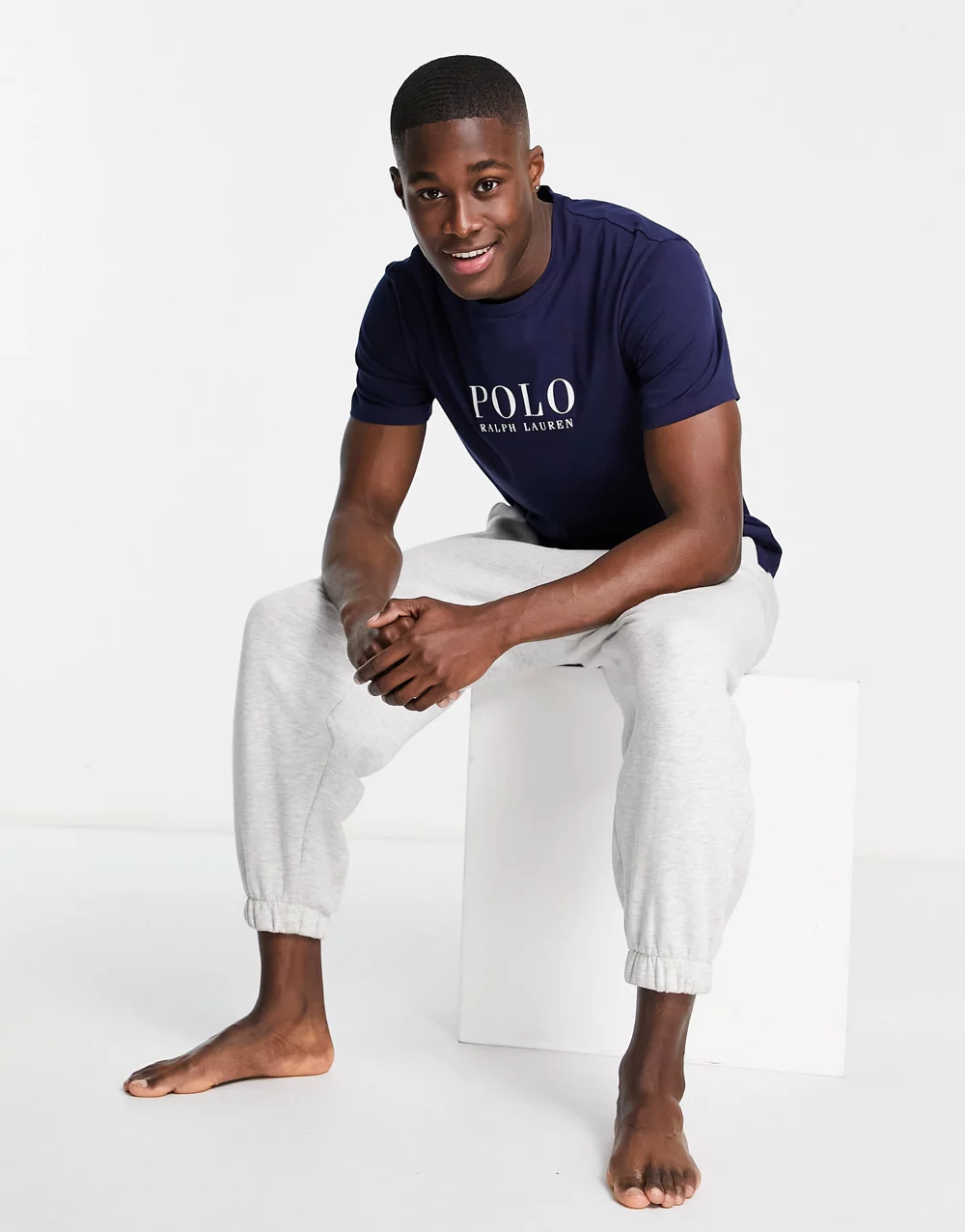- Polo Ralph Lauren lounge t-shirt in navy with chest text logo