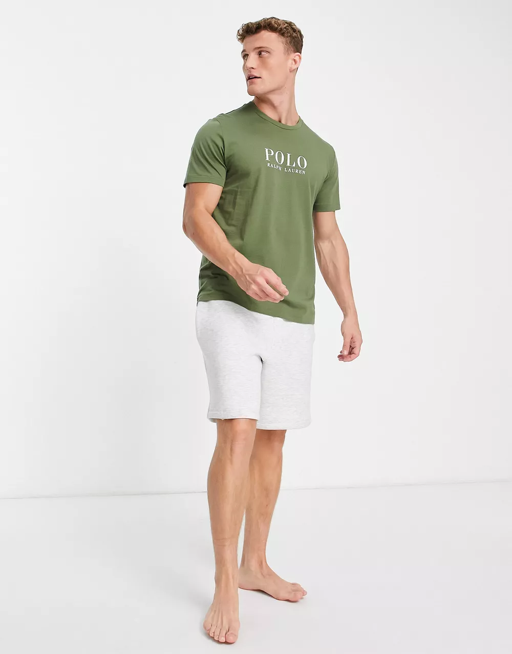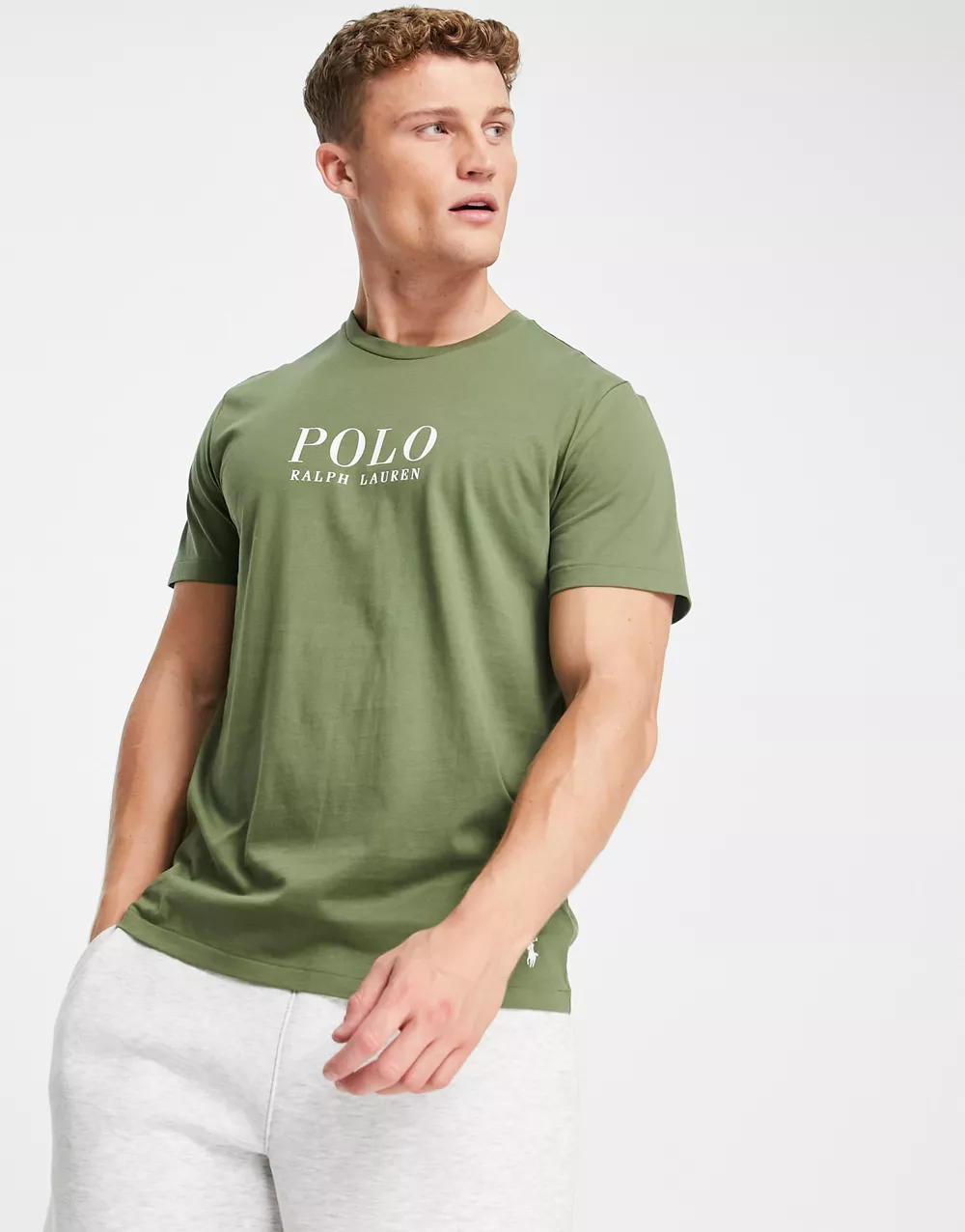 - Polo Ralph Lauren lounge t-shirt in olive green with chest text logo