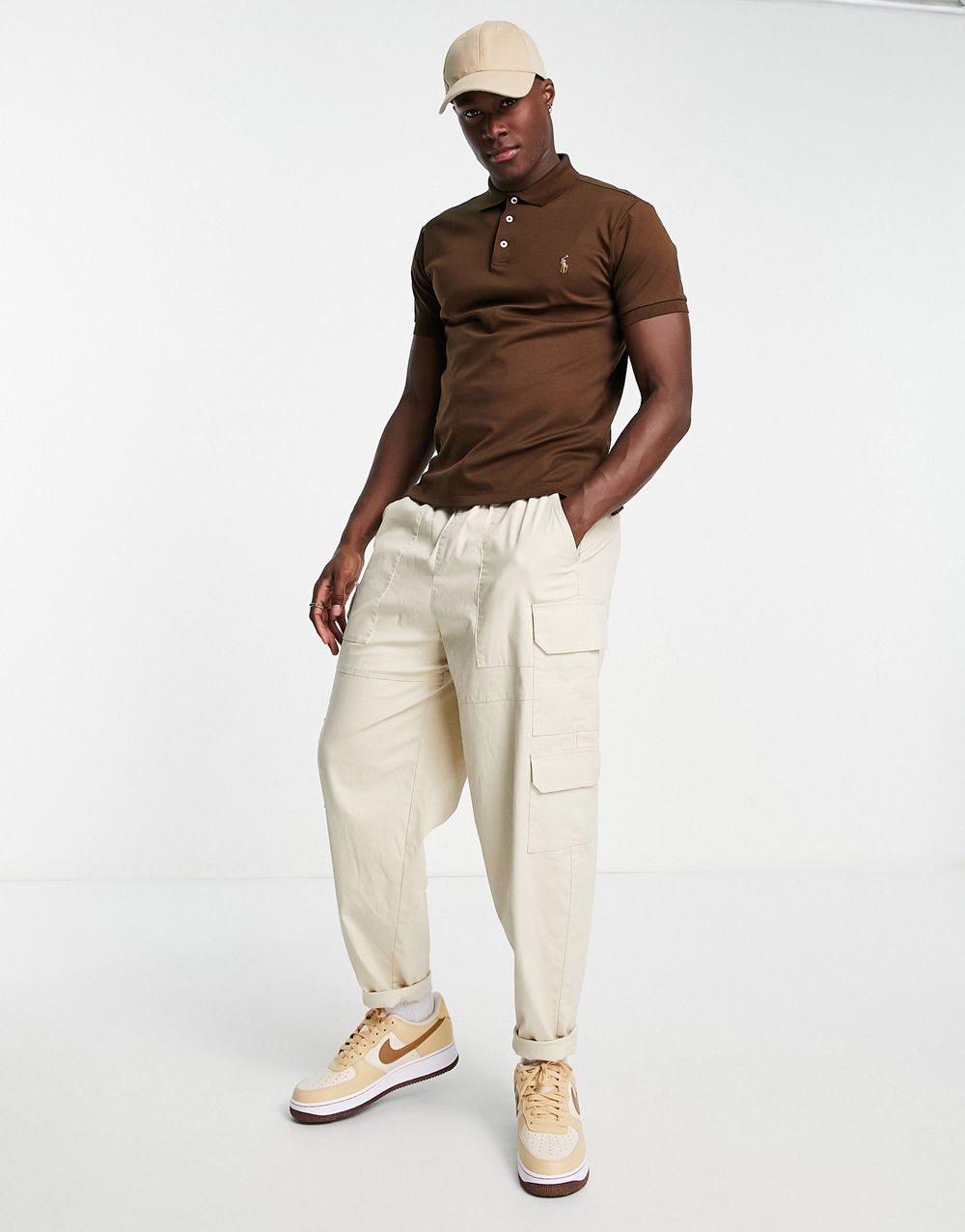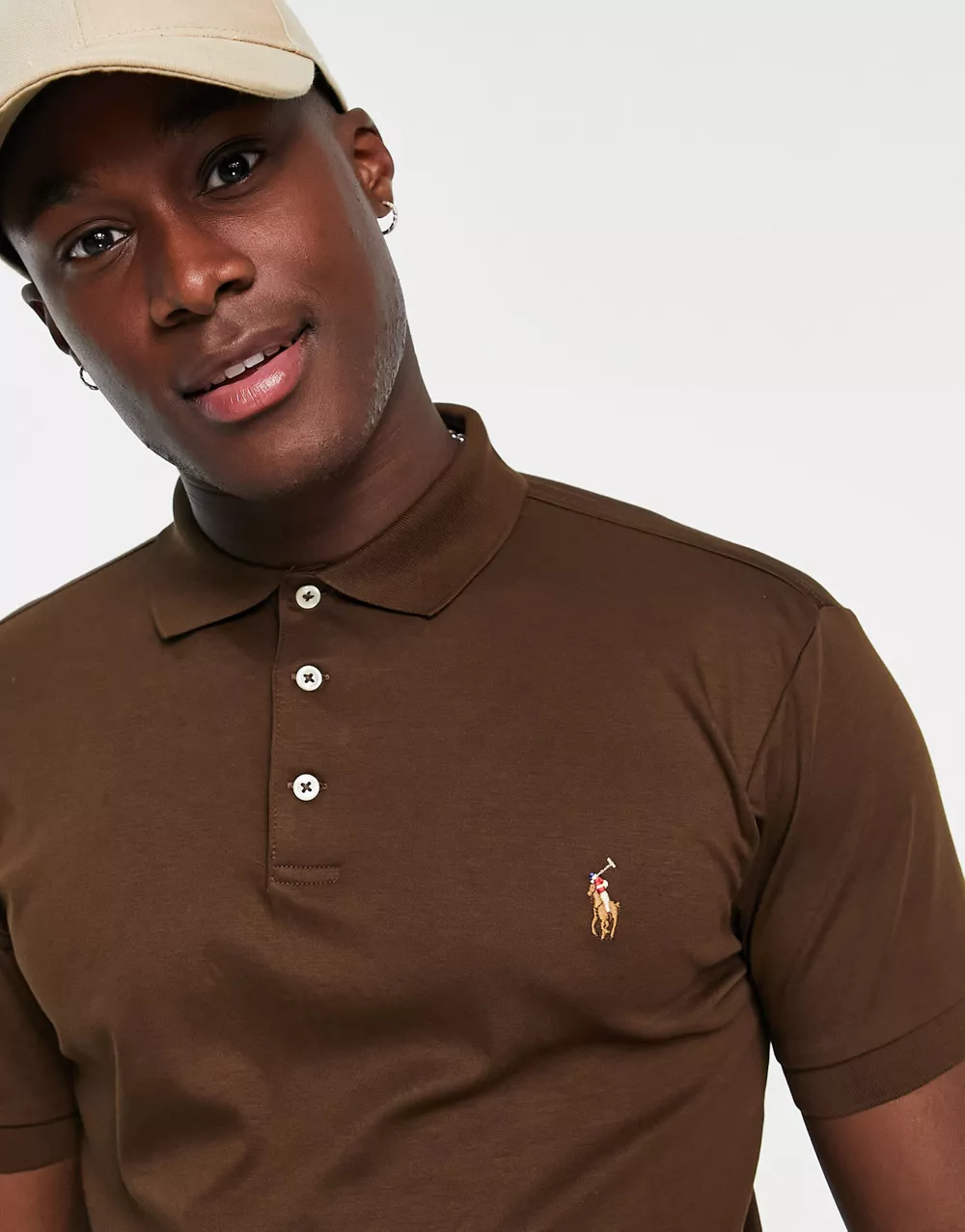 - Polo Ralph Lauren multi icon logo pima cotton polo slim fit in brown