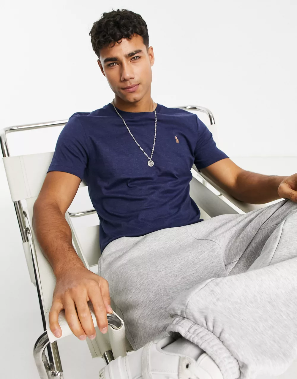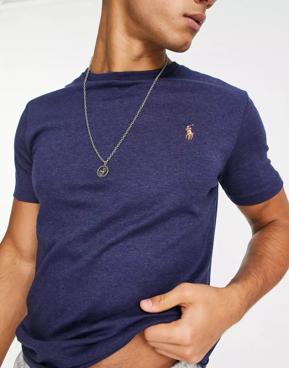 - Polo Ralph Lauren multi player logo pima cotton slim fit t-shirt in navy marl