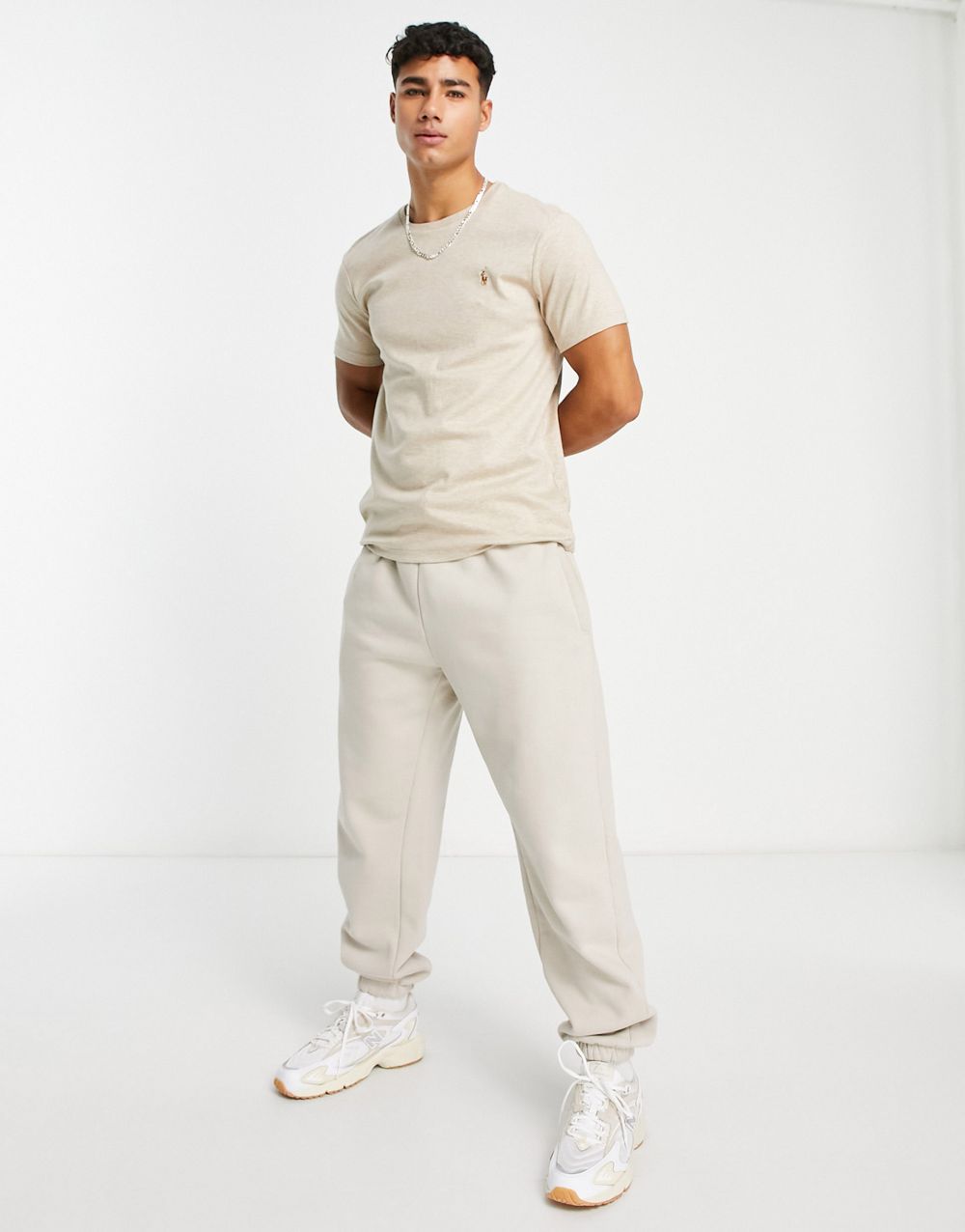 - Polo Ralph Lauren multi player logo pima cotton slim fit t-shirt in sand marl