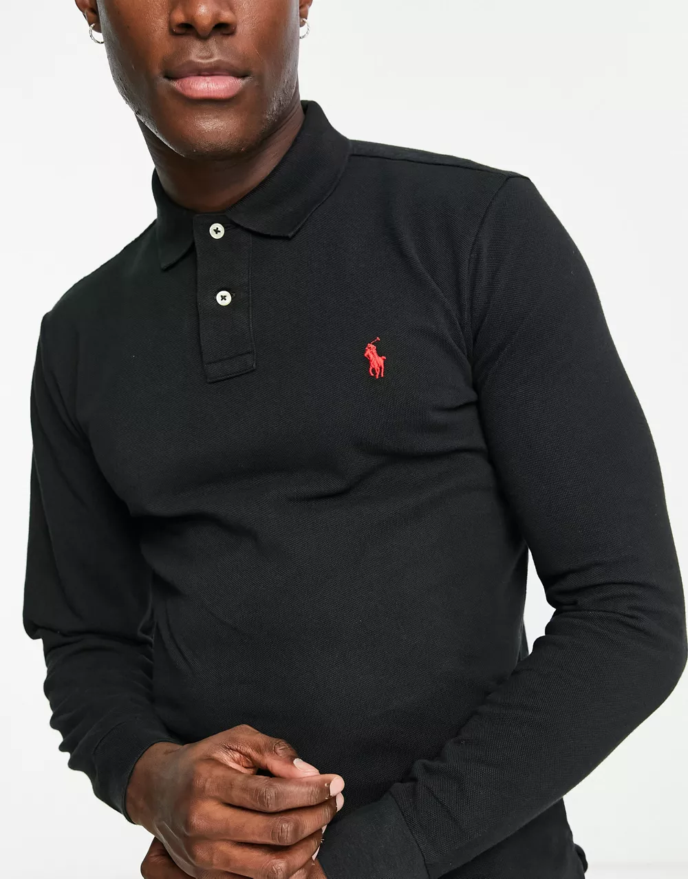 - Polo Ralph Lauren slim fit long sleeve polo in black with player logo
