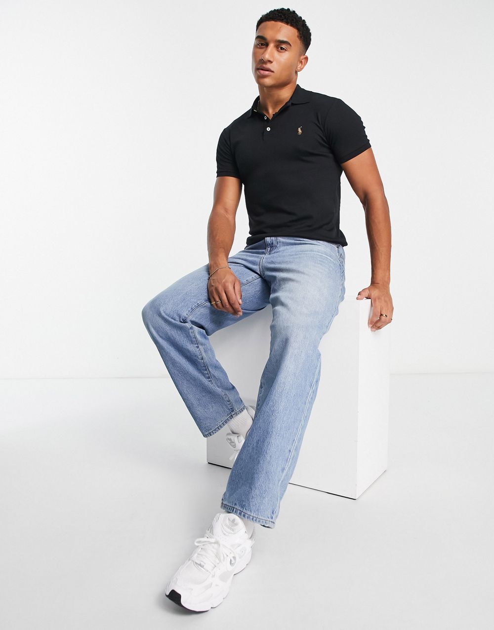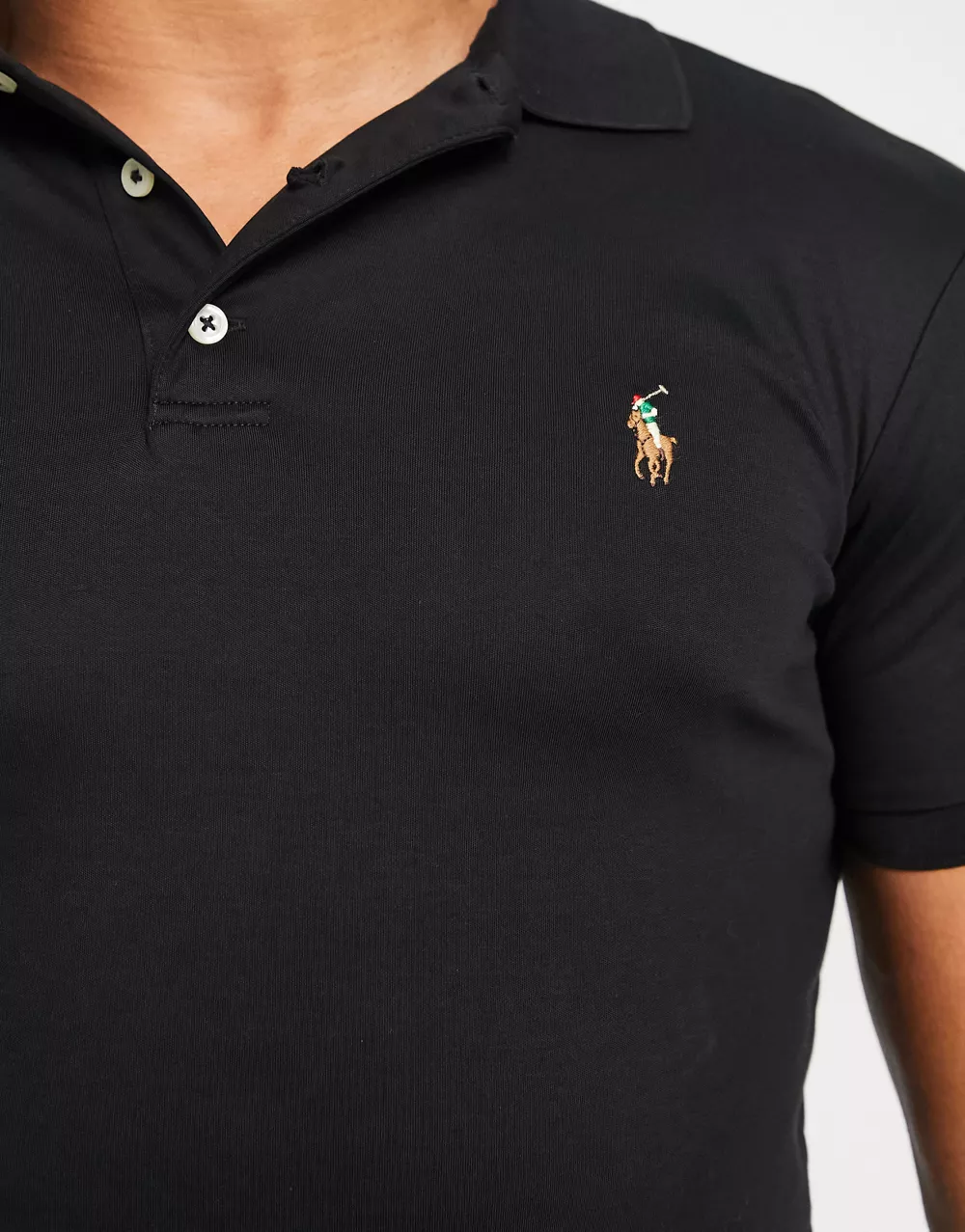 - Polo Ralph Lauren slim fit pima polo multi player logo in black